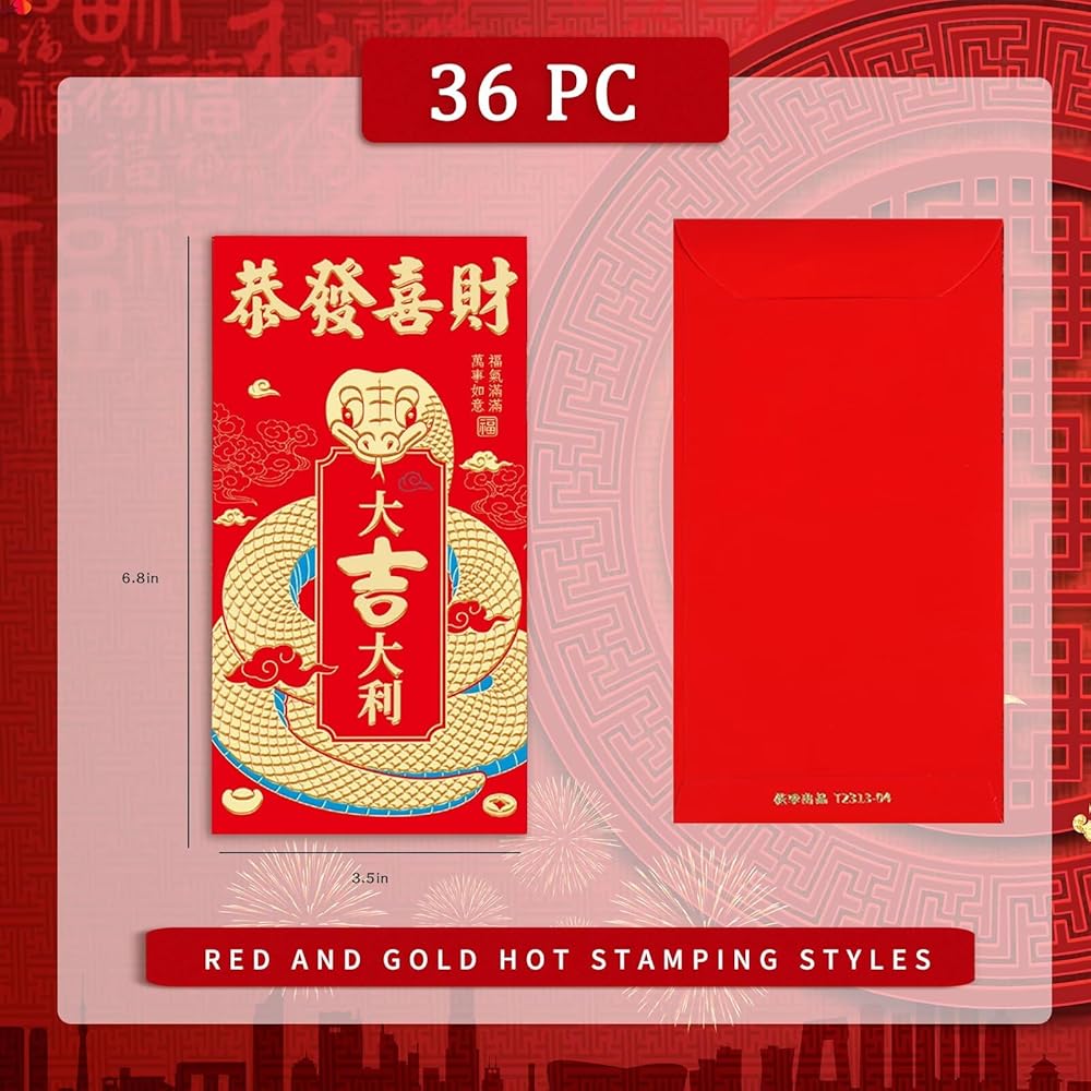 تحتوي الحزمة على: 36 حزمة حمراء ، كل حزمة مع 6 سنوات مختلفة من أنماط الأفعى ، 6 حزم لكل كيس. إنها طريقة رائعة لإرسال أطيب تمنياتك للعائلة والأصدقاء في العام الجديد.