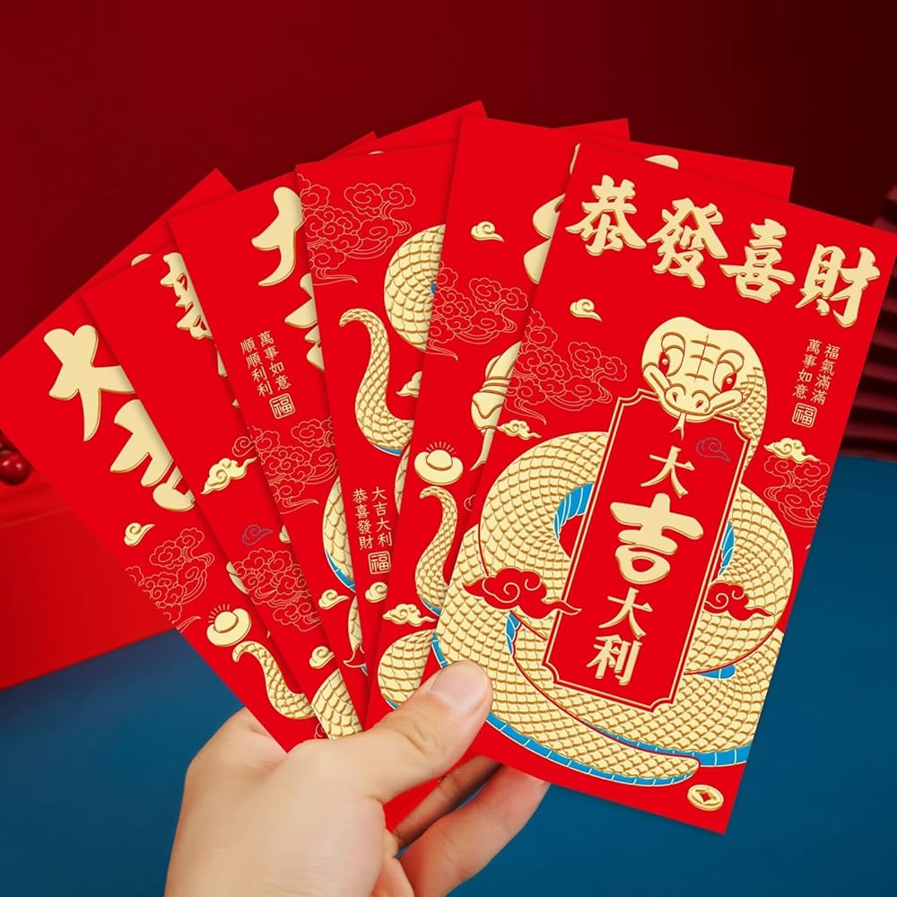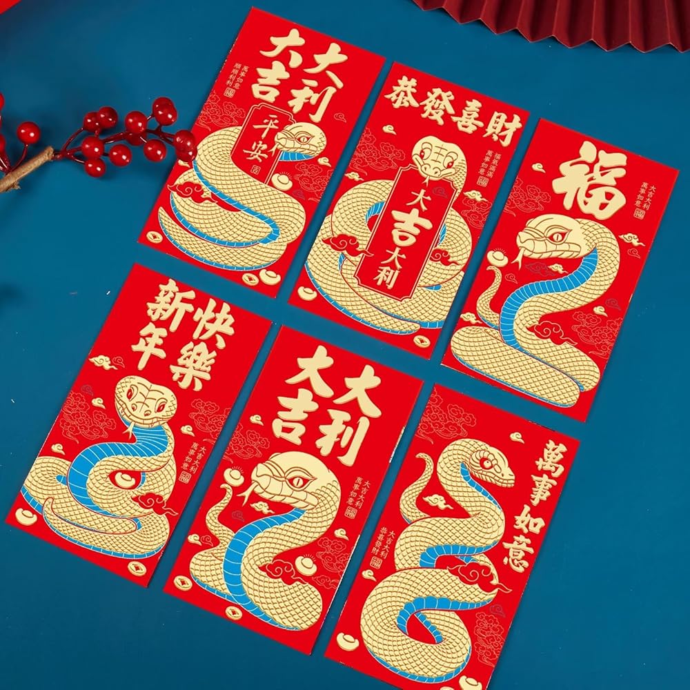 صينية جديدة من الأظرف الحمراء Snake 2025 ، سنة Snake Red Packets ، حزم حمراء ، حزم حمراء صينية ، محافظ محظوظة للعام الجديد ، الزفاف ، عيد الميلاد ، عيد ميلاد. (6 أنماط ، 36 جهاز كمبيوتر)