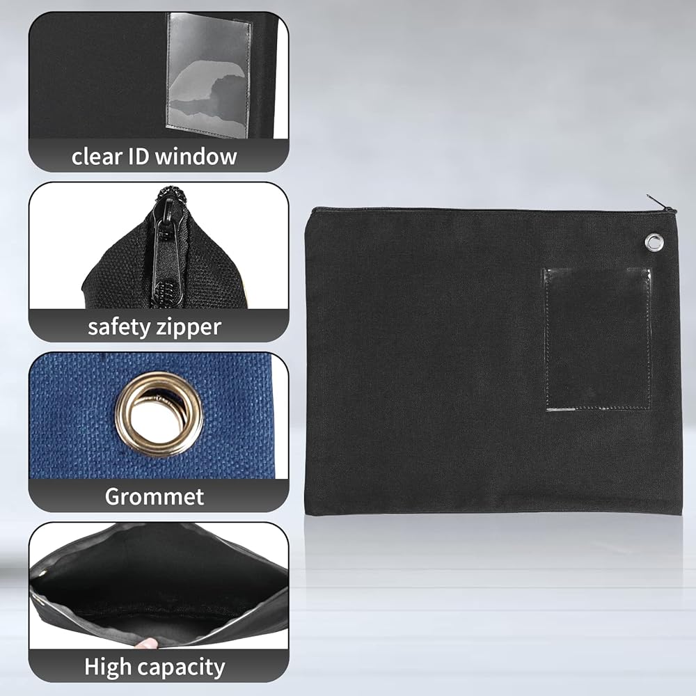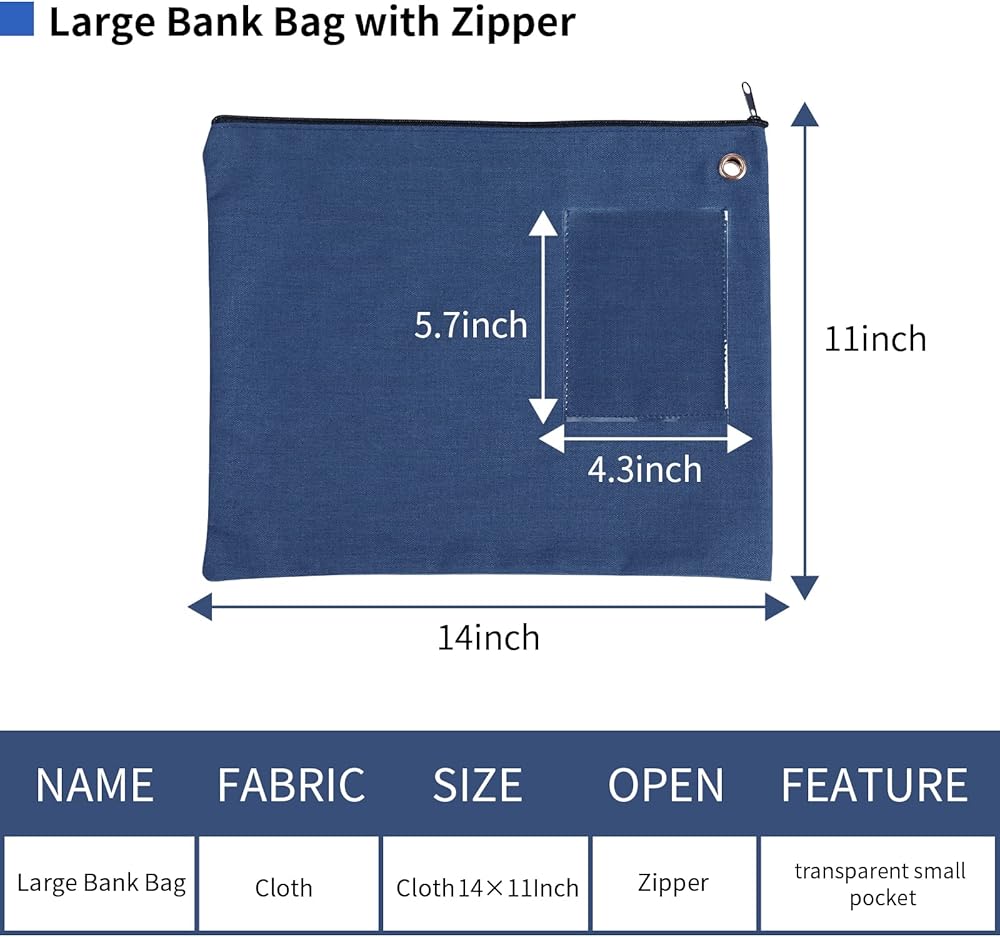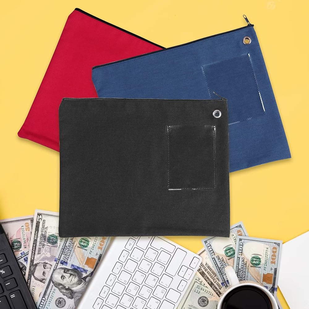 1.Bank Bag with Zipper:You will receive 3 pieces large bank deposit bag(blue,black,red)It can be used as an inter-office pouch for internal communications. It can also help you organize your sundries. Sufficient quantity to meet your daily replacement and use.
