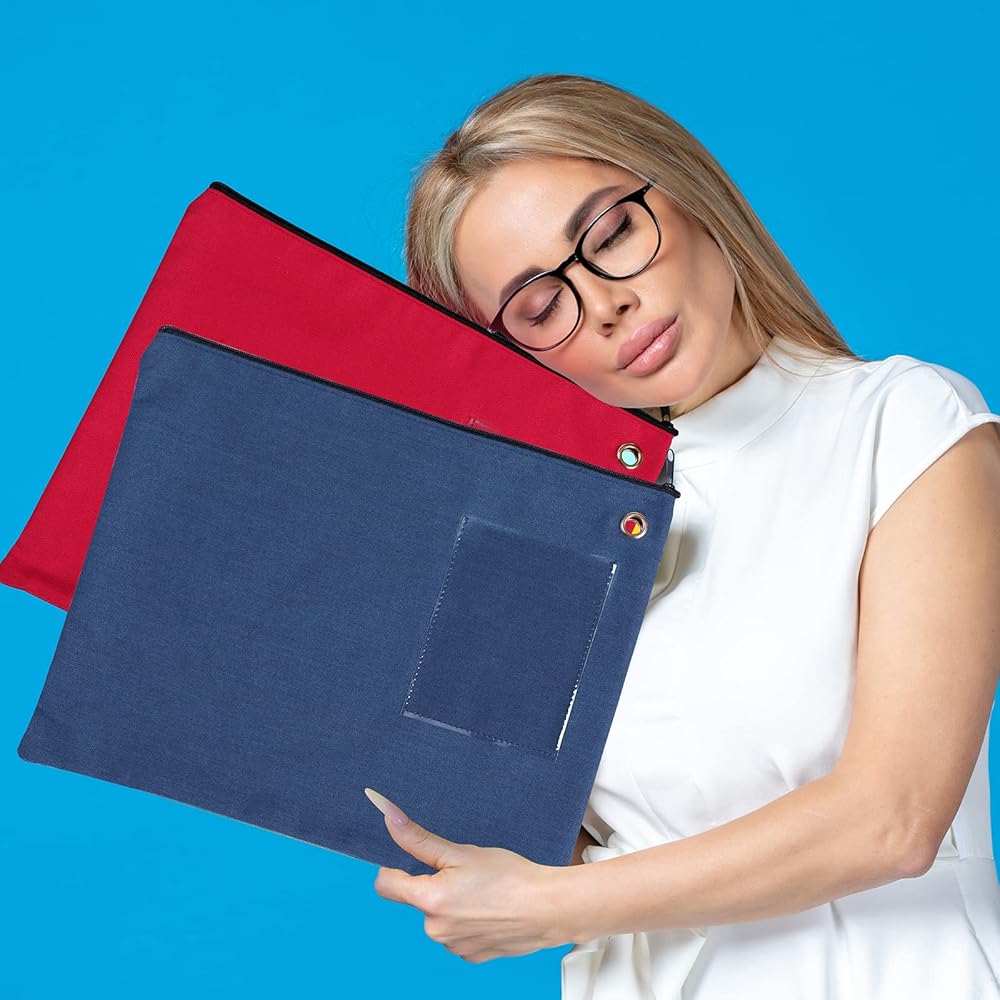 14×11Inch Large Bank Bag with Zipper Red Bank Deposit Bag with Grommet Interoffice Mailer Canvas Transit Sack for Documents Money Passport