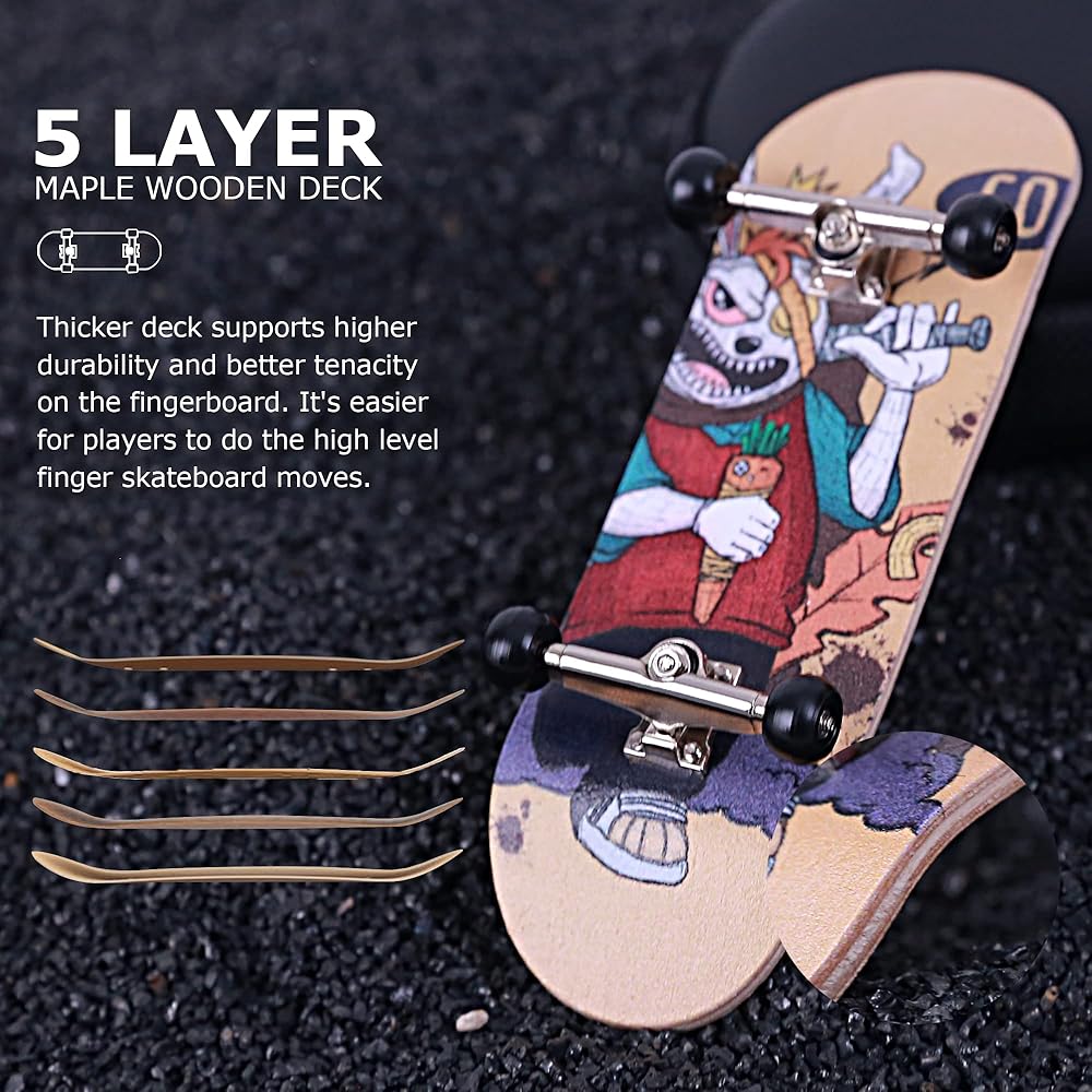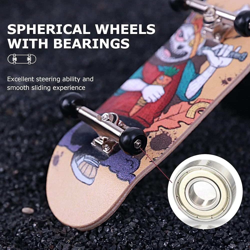 سطح سطح القيقب الواسع وشاحنة سبيكة: تتكون أصابع البروفيورات من سطح السفينة من مابل من 5 طواف وشاحنتين من سبائك ، والتي تطبق المتانة أعلى ومتصلات أفضل للمنتجات. تحتوي ألواح التزلج على إصبعنا على أحجام مختلفة للاختيار من بينها ، واحد هو 32 مم والآخر 34 مم. يدعمك سطح السفينة الواسع للحصول على ركوب إصبع أكثر استقرارًا.