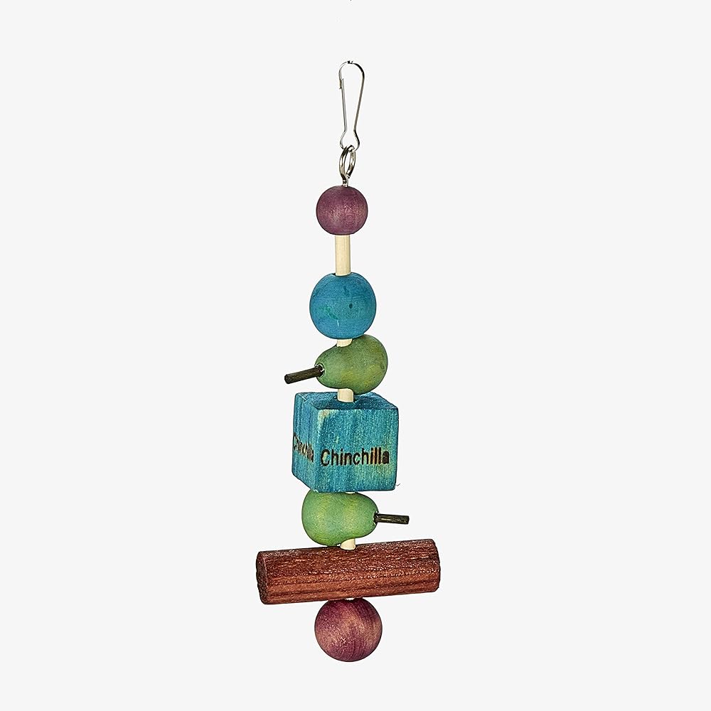 A completely chewable kabob toy with a metal attachment hook make it easy to hang in any habitat