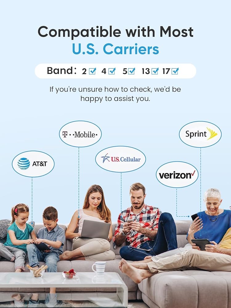 📶متوافق مع جميع شركات النقل الرئيسية في الولايات المتحدة بما في ذلك Verizon وAT&T وT-Mobile وSprint وU.S. Cellular وStraight Talk، وقد تم تصميم المعزز الخاص بنا للسيطرة على لعبة الإشارة. لا مزيد من القيود أو قيود الإشارة - لقد قمنا بتغطيتك! مع دعم نطاقات متعددة، بما في ذلك النطاق 5، والنطاق 17، والنطاق 13، والنطاق 2، والنطاق 4، يضمن المعزز الخاص بنا أداء الإشارة الأمثل عبر الشبكات المختلفة.