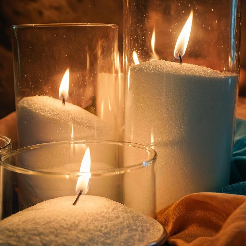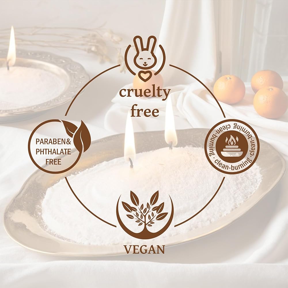 الملمس والمظهر: تم تصميم الشموع المعقولة بعناية لأولئك الذين يعطون الأولوية للاستدامة والأناقة. يشبه الملمس المحبب الفريد الرمال أو اللؤلؤ ، مما يوفر جمالية جذابة بصريًا. يمكن صبغها بسهولة وتسمح لنا بإنشاء تصميمات ذات طبقات أو ألوان صلبة في أي حاويات لدينا