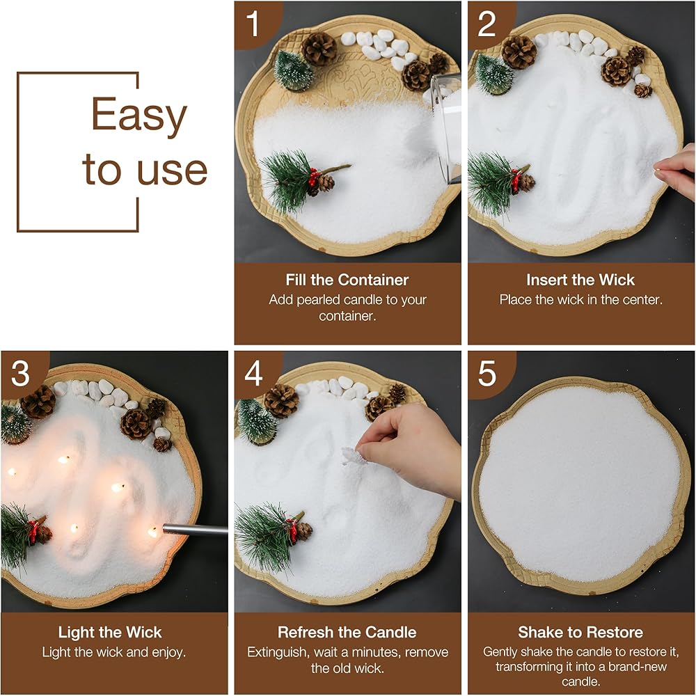 خيارات التخصيص: يمكنك تخصيص شمعة Pearled عن طريق إضافة الزيوت الأساسية للرائحة أو باستخدام صبغة ملونة مختلفة لإنشاء تصميمات فريدة. هذا التنوع يجعل الشموع الملتهبة مناسبة لمختلف المناسبات ، بما في ذلك الأحداث والديكور المنزلي