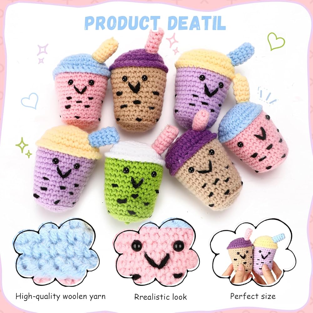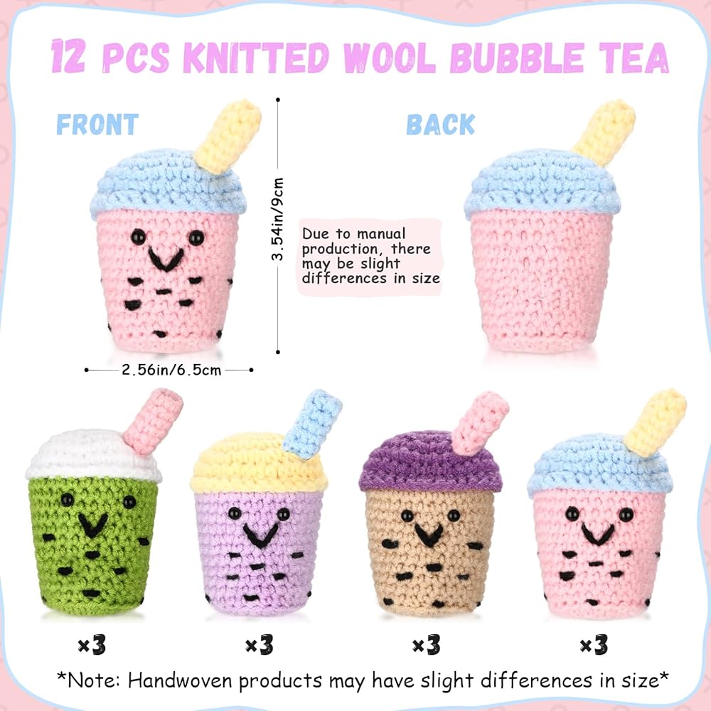 Each mini knitted wool bubble tea cup is created with a cute, quirky design that sets it apart from traditional doll. Our team of experts meticulously craft each piece, ensuring a cute, interesting and irresistible final product.