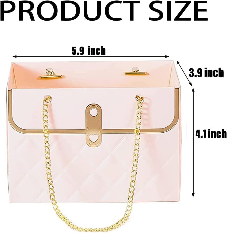 Flower Paper Gift Bag, Bouquet Storage Bucket Florist Handbag with Metal Chain, Gift Craft Wrap Bag for Wedding Party Valentine's Day Birthday Mother's Day Bridal Shower Gift Wrap Bags
