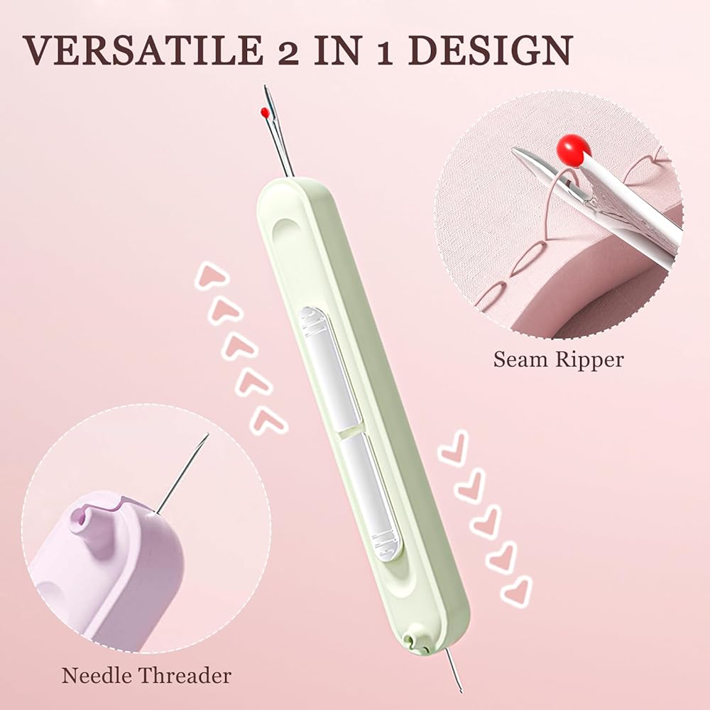 تصميم 2-in-1: يجمع هذا المنتج المبتكر بين راحة خيوط الإبرة ومسعيد التماس في أداة مفيدة واحدة ، وتبسيط احتياجات الخياطة ، والحياكة ، والخياطة.
