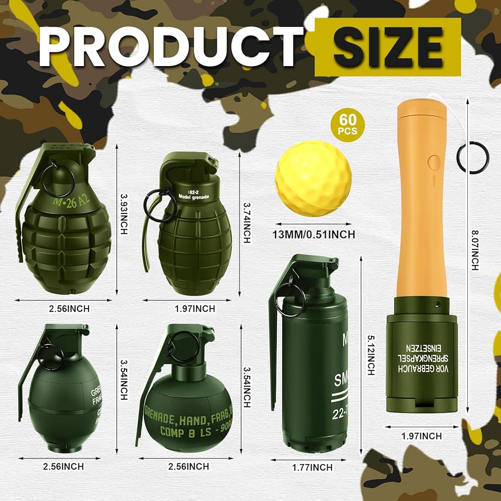وفرة من المغامرة: مع كل حزمة بما في ذلك 6 قنابل مختلفة على الطراز العسكري ، المتوفرة باللونين الأسود والجيش الأخضر ، فإننا نقدم لك الكثير للاستمتاع بحرب تكتيكية مستمرة ؛ إلى جانب القنابل اليدوية ، نقدم أيضًا 60 ذخيرة رغوة ، مما يلغي ضرورة إعادة تجديد إمداداتك باستمرار ؛ هذه الألعاب هي دعوى للاعبين المتحمسين الذين يحبون الانخراط في مغامرات مثيرة