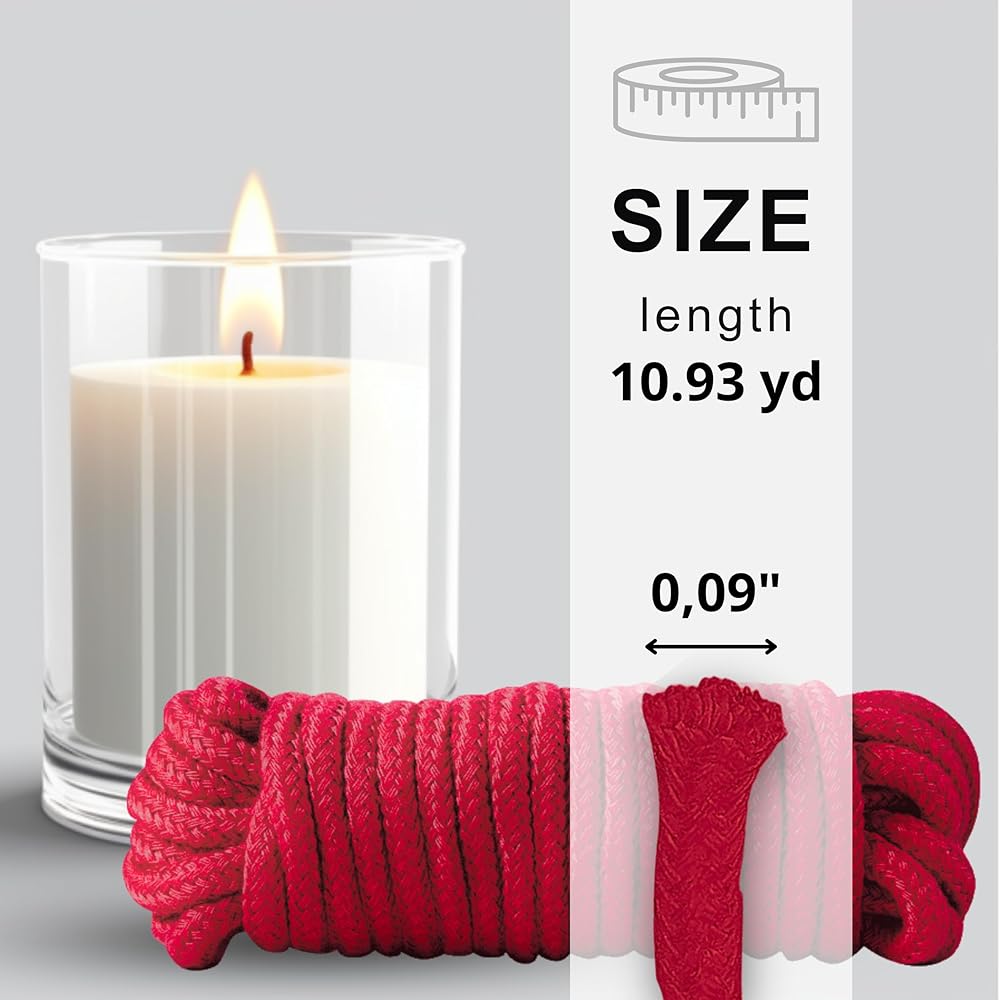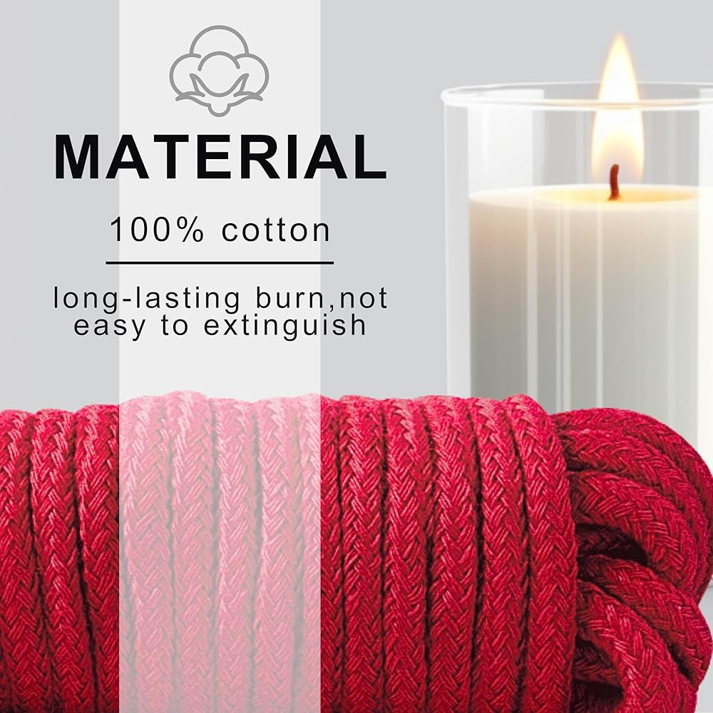 You will get well woven red cotton candle wicks which can be used for many other purposes. Wrap gifts, add to decorative elements, use as a macrame material or an addition to any of your DIY projects. This red wick for candles is bright and doesn't fray over time