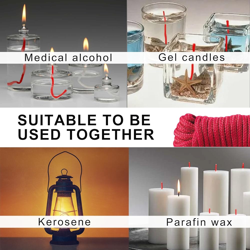 The package includes: 1 roll of 33 feet cotton red lamp oil wicks, red cotton cord for candle making. This is a very convenient wick format for cutting the desired wick length. Get a great candle making experience with these red candle wicks, your red wicks needs will be met