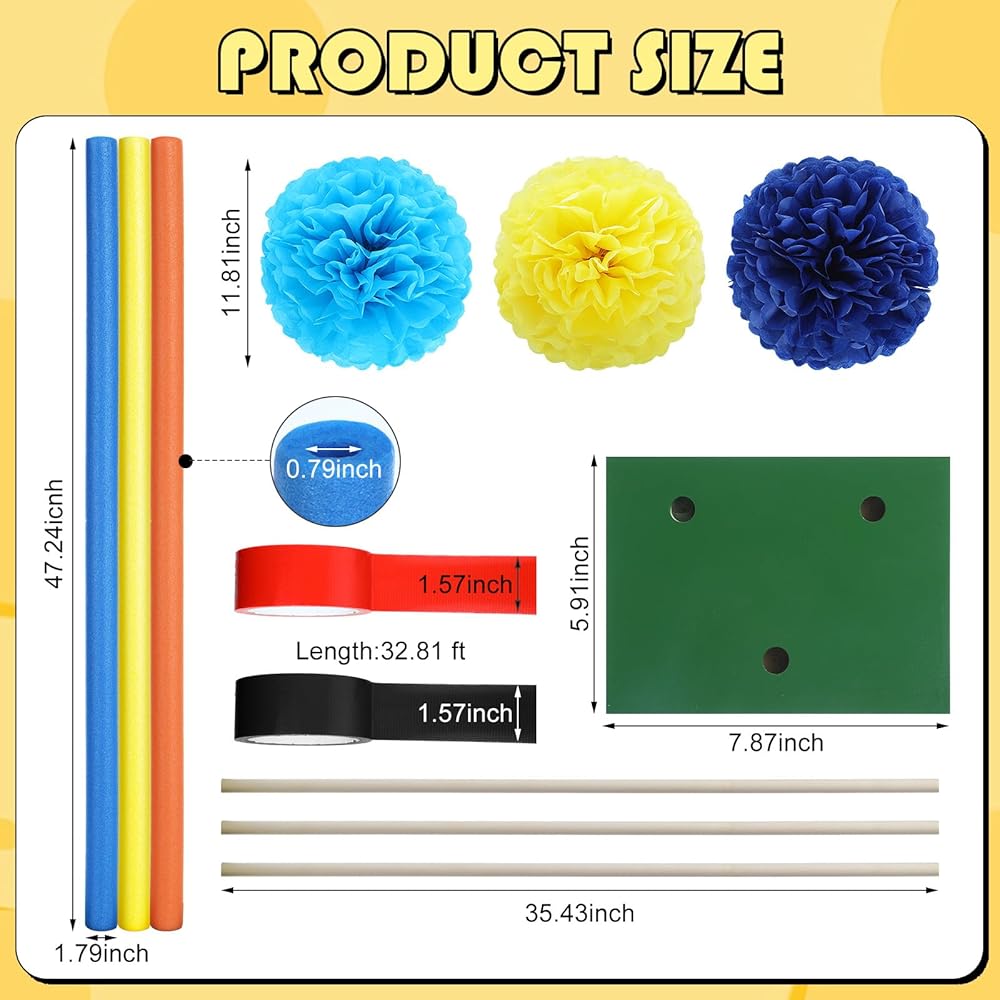 • Product Size: paper pompoms 11.81 Inches/ 30 cm, beautiful eye catching colored masking tape 1.57 inches x 32.81 ft/ 4 cm x 10 m, you can wrap them around a foam rod or attach them to other decorations; The pool noodles measure 1.97 inches x 3.94 ft/ 5 cm x 120 cm, long enough to meet your various decorating needs; You can also cut them to different lengths for use