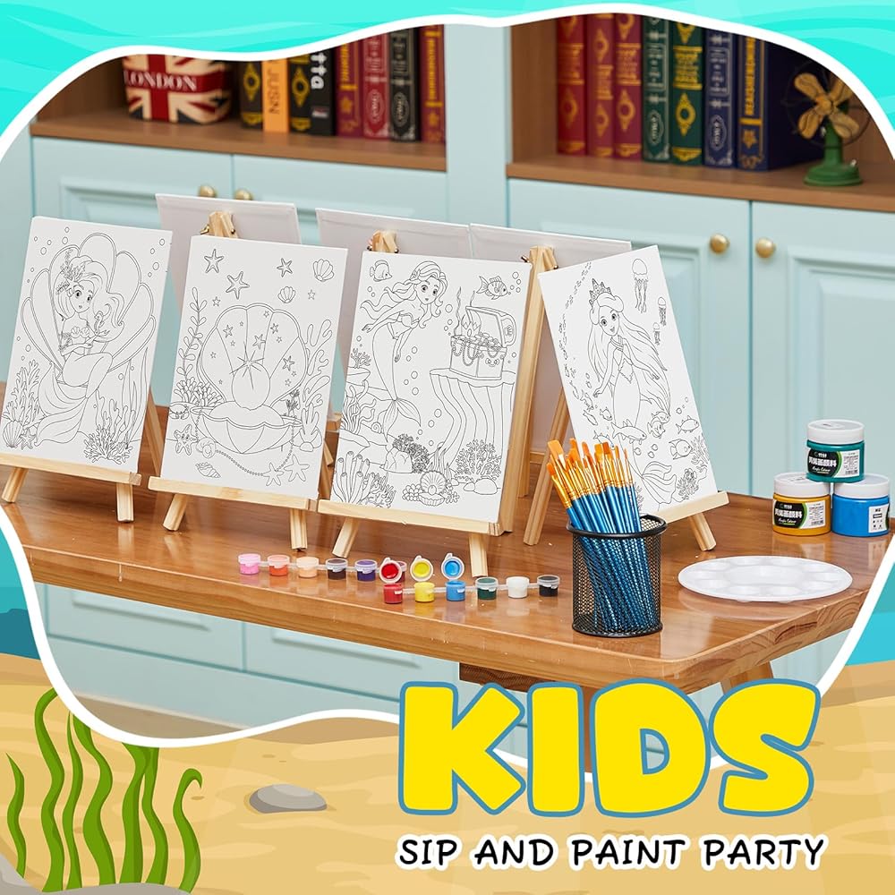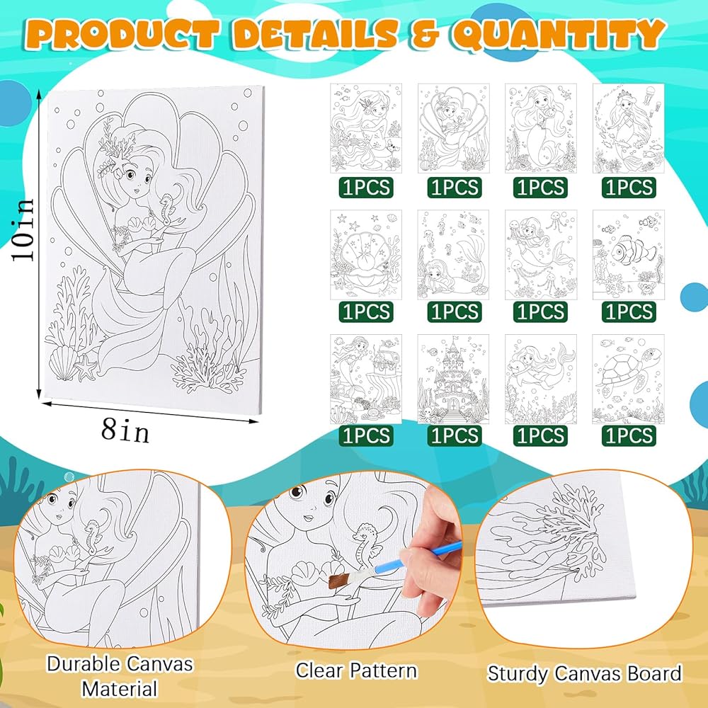 تشمل 12 مجموعة من القماش المسبق لطلاء مجموعات الحفلات 12 حلوى ميرميد مسبقة 12 لوحة 12 ساحة 12 ساحة 12 مجموعة فرش 24 جهاز كمبيوترا أكريليك الدهانات ورسم مجموعة الطلاء للفنون عيد ميلاد هدية