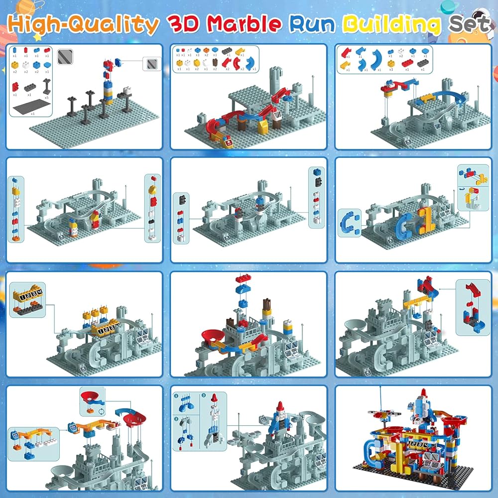 • [Great STEM Toy Gift] تجمع هذه اللعبة المبتكرة بين الإثارة في مسار رخامي ، مع إمكانيات بناء كتل مسار سفينة الفضاء. استعد لتجربة مغامرة رخامية مثيرة مع أطفالك! مجموعة الجري الرخامية هذه هي هدية لعبة رائعة لـ 3 4 5 6 7 7 7 8 سنوات من الفتيات لعيد الميلاد وعيد الميلاد وأي مناسبات أخرى