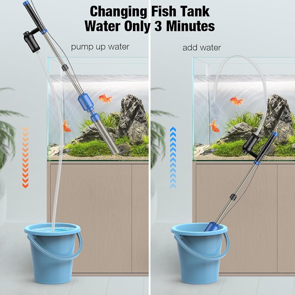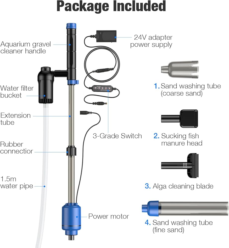 منظف الحصى الكهربائي في حوض الأسماك الكهربائية ، منظف الحصى للأسماك لتغيير ماء غسل الماء مع تدفق ماء قابل للتعديل ، والتحكم في 3 فئات ، وقوع موقت (أزرق)
