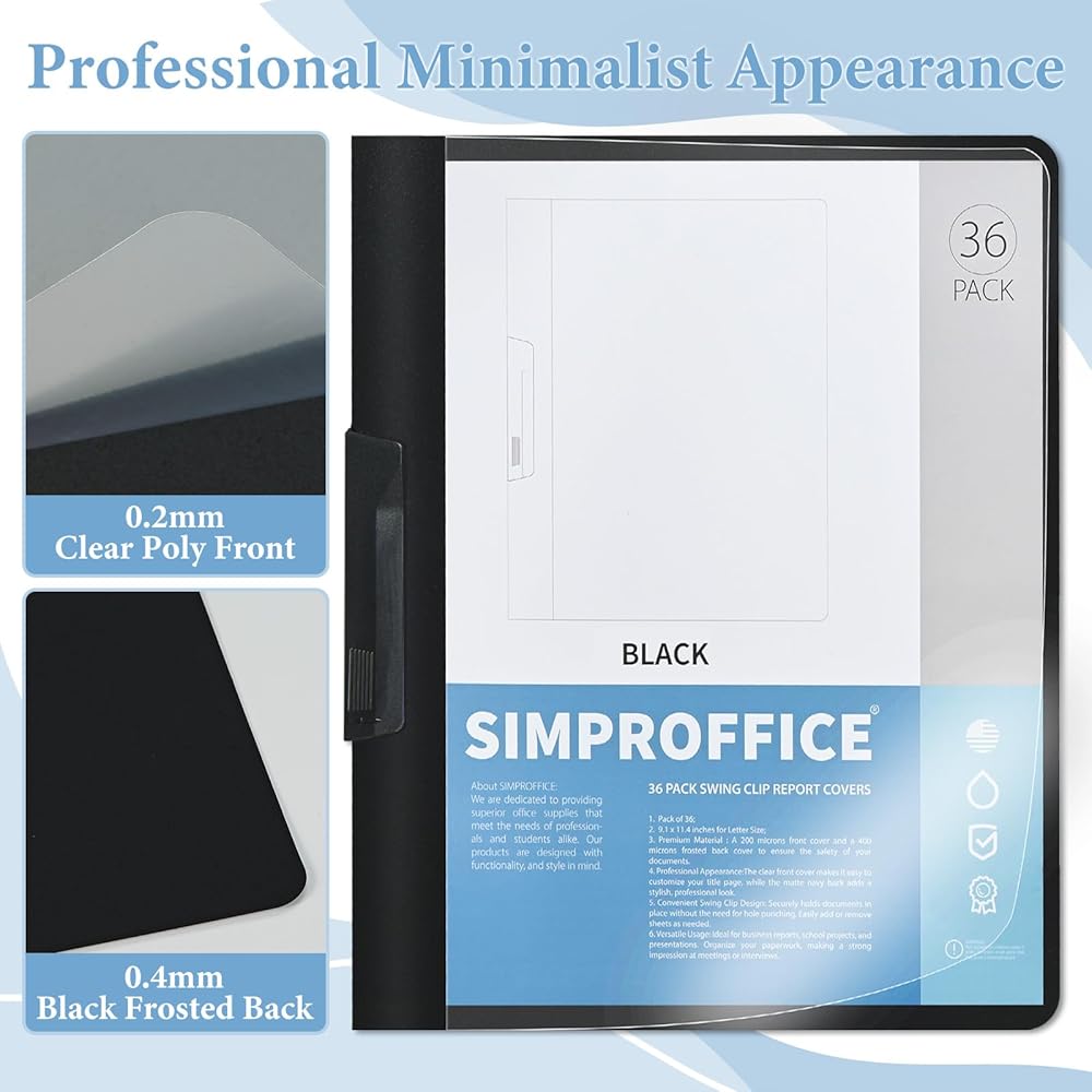 مواد قوية: تتميز مجلدات مقطع Simproffice Swing Clip بغطاء أمامي واضح (200 ميكرون) وغطاء خلفي مزج باللون الأزرق الأزرق (400 ميكرون) ، مما يضمن سلامة المستندات الخاصة بك.