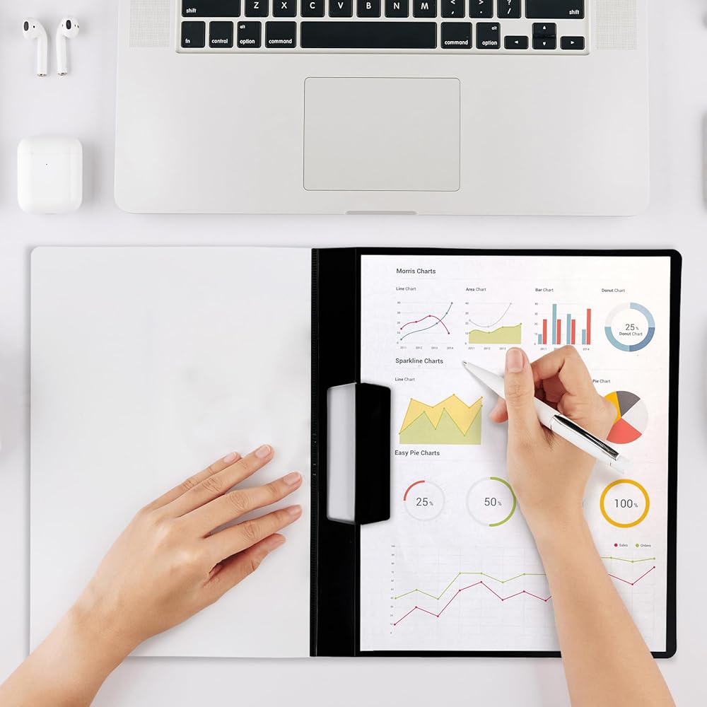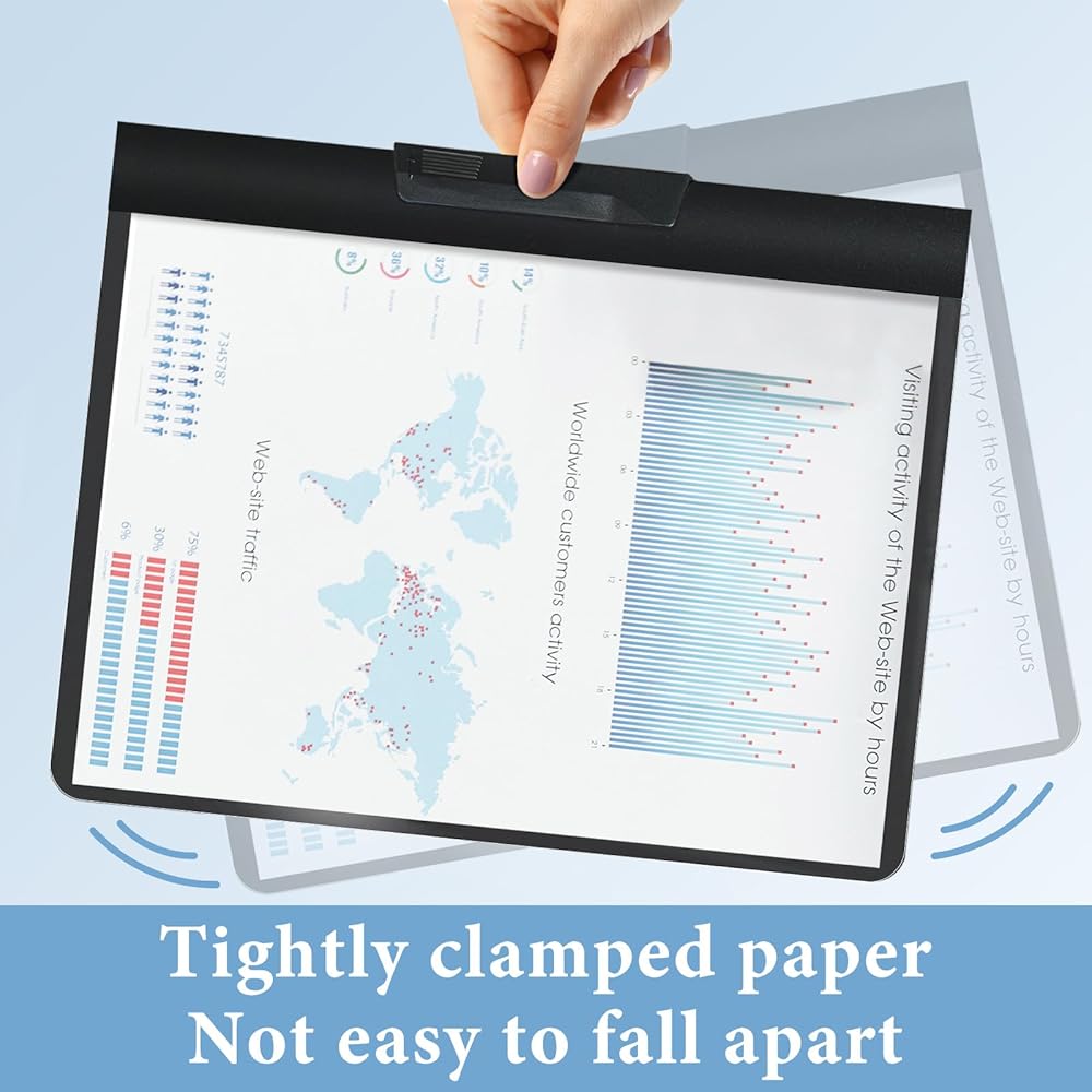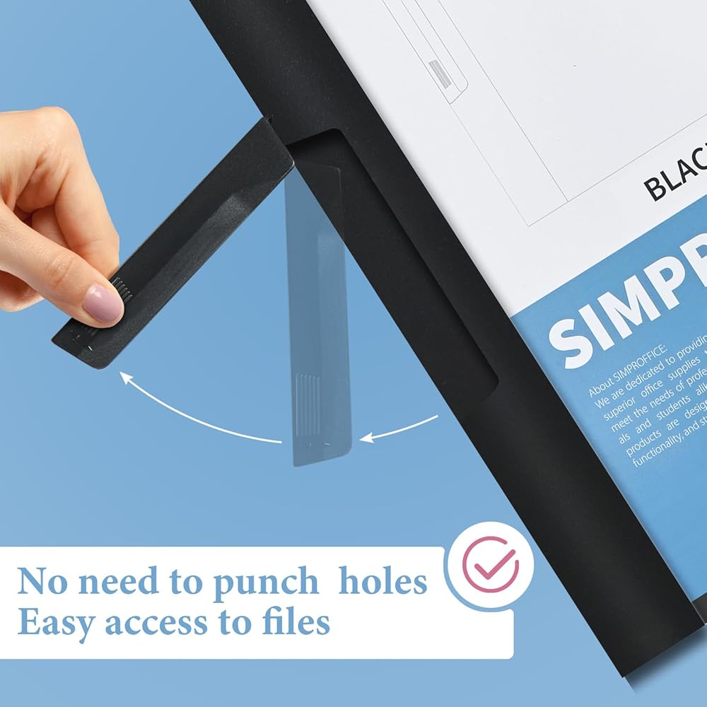 تصميم مقطع سهل الاستخدام: مع تصميم مقطع بدون ثقب ، فإنه يحمل بسهولة المستندات دون الحاجة إلى ضرب الثقوب. يحافظ على المستندات أنيقة وسهلة التقليب ، وتبسيط سير العمل وتحسين كفاءة المكتب.