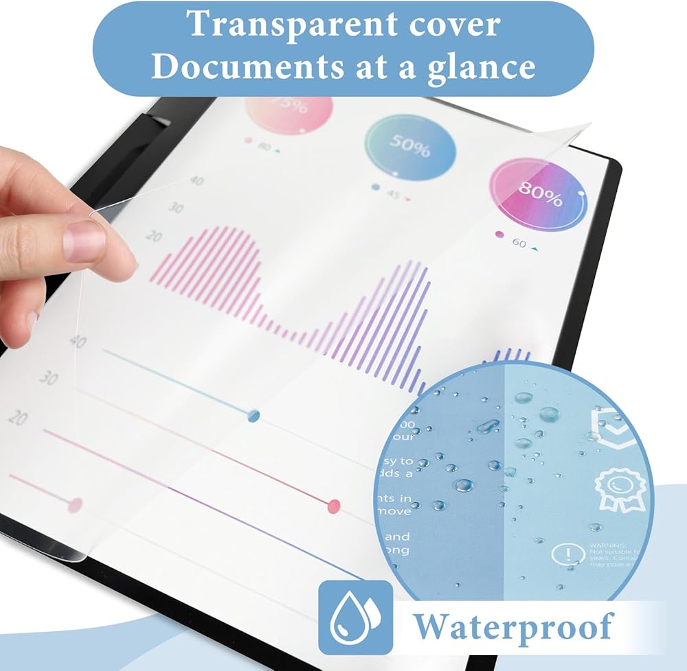 المظهر المهني: يعرض الغلاف الأمامي الواضح الصفحة الأولى من مستنداتك ، بينما يضيف عودة Navy Blue Frosted طبقة من الاحتراف. جعل مستنداتك تبدو احترافية ومرتبة في أي إعداد.