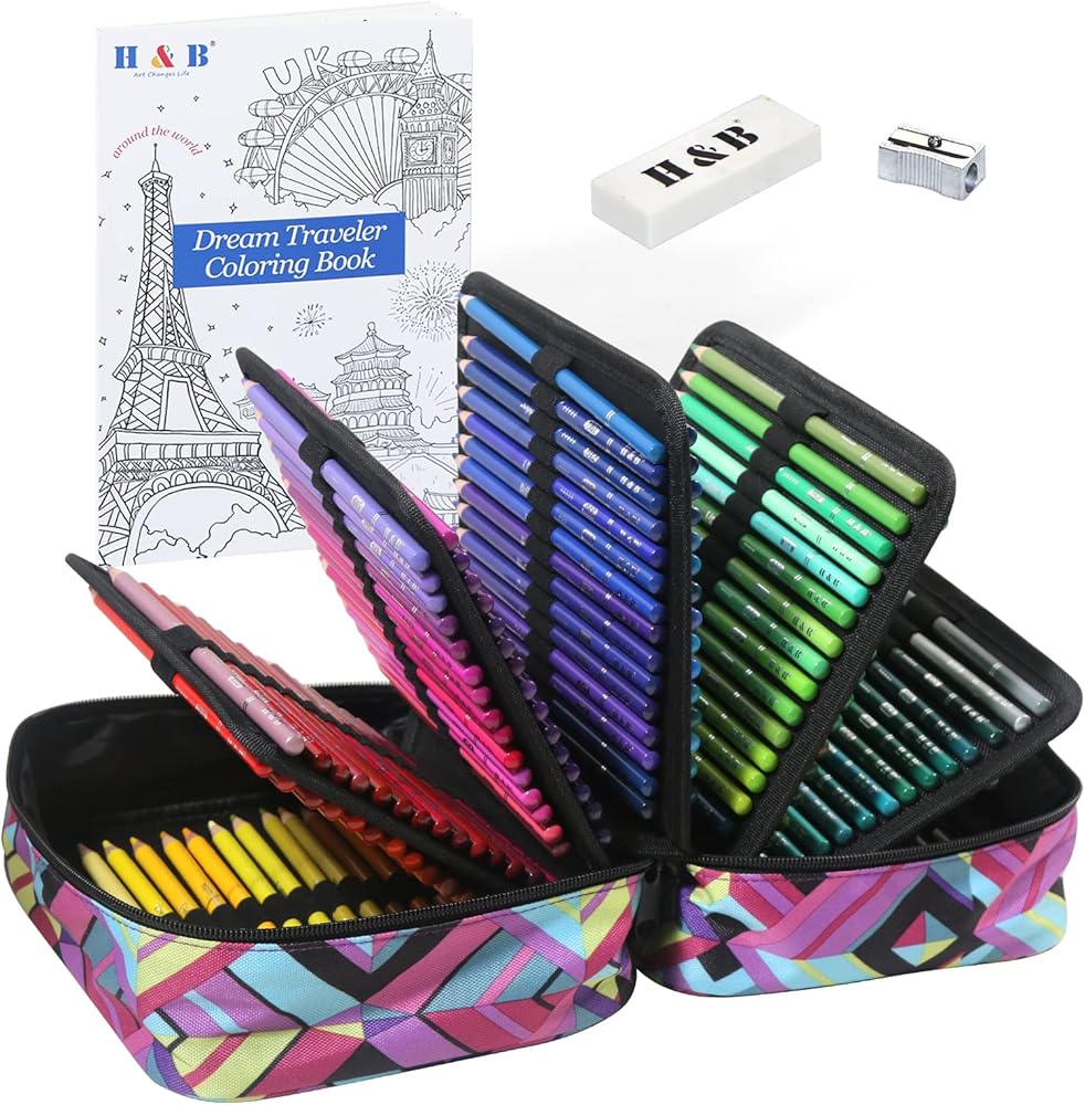• 123 PCS مجموعة أقلام الرصاص: مجموعة احترافية تأتي مع 120 أقلان أقل من ألوان أقل ، وحالة حمل سحابية مصنوعة من النايلون للتنظيم السهل ، وشرح ، وكتاب تلوين واحد ، وممحاة ، مثالية للرسم ، والرسم ، والمزج ، والتظليل ، والبالغين كتب التلوين