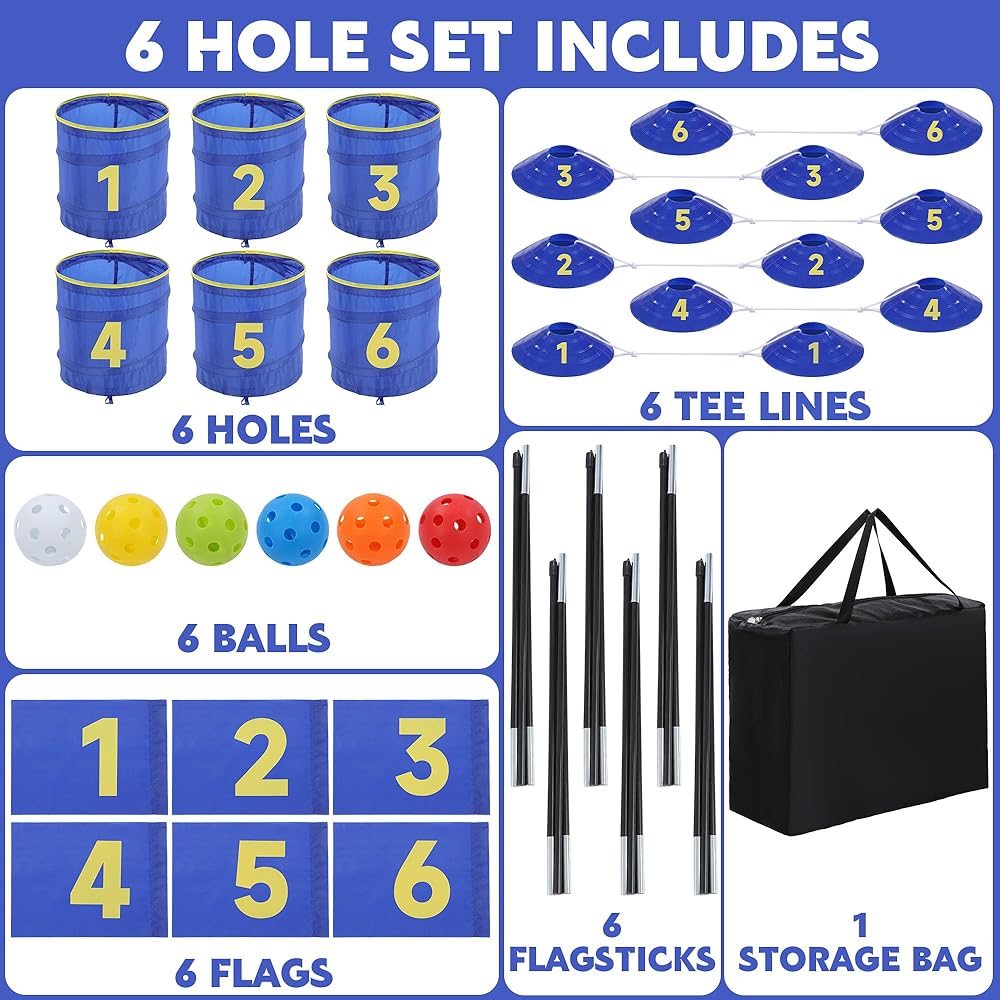 Balapet Golf Golf Yard Bucket Games ، 6 Holes Golf Practice Game with Flag ، لعبة غولف في الفناء الخلفي المحمول للحديقة ، الشاطئ ، الفناء الخلفي ، العشب