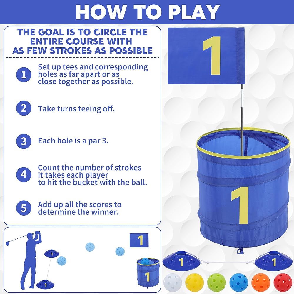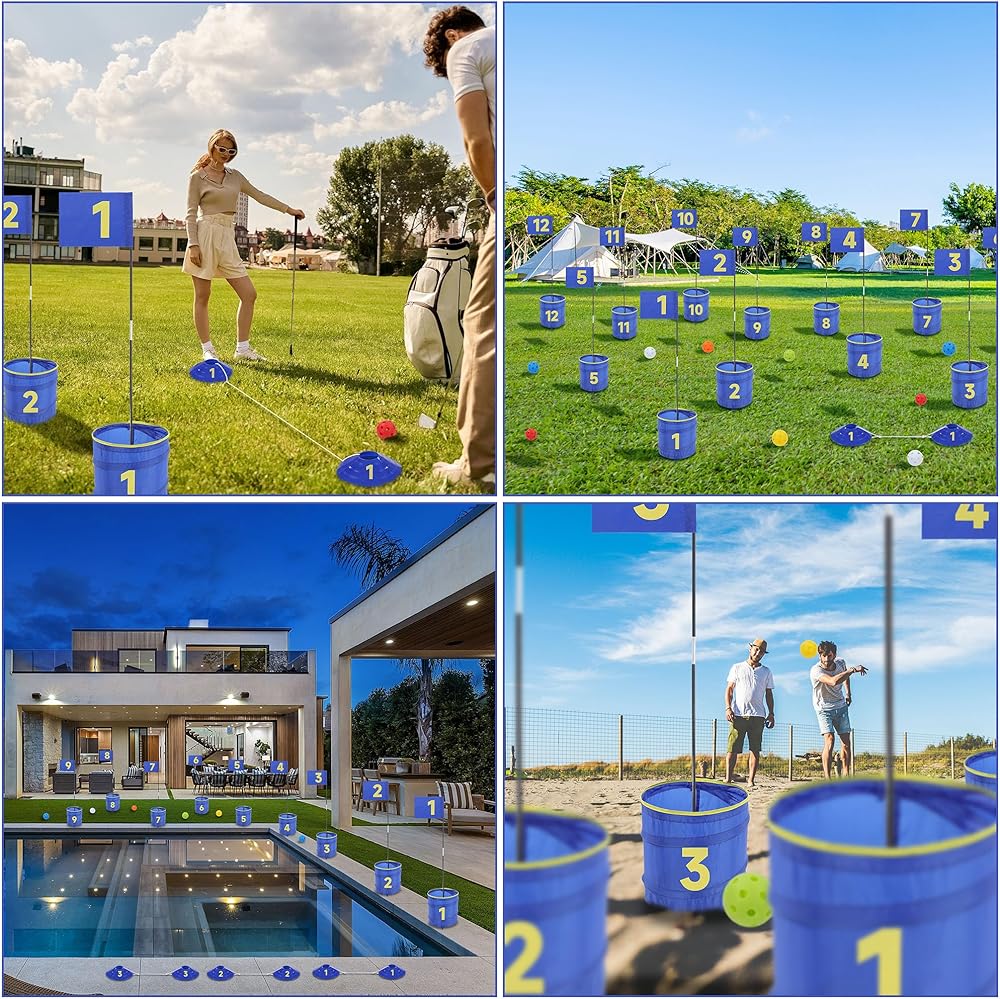 【Suitable for All Ages】:This backyard game is suitable for the whole family.Players can design courses for easy or challenging shots, making it endlessly fun for novice and experienced golfers alike!