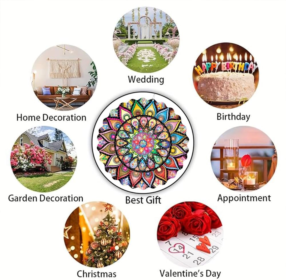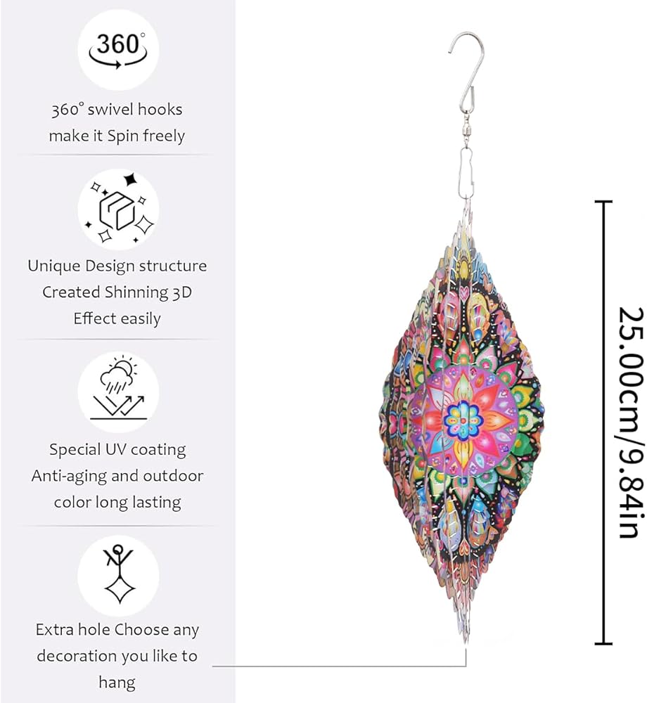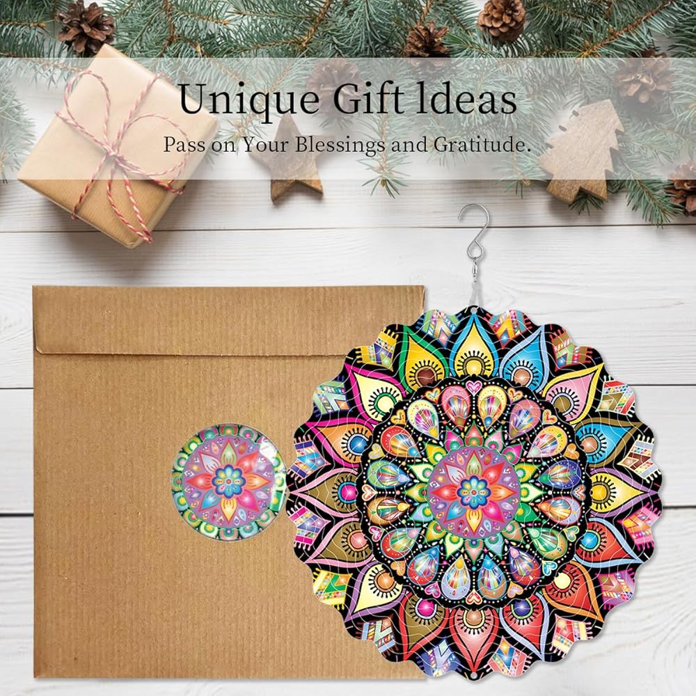 Introducing our stunning Multi Color Flower Mandala Wind Spinners, an exquisite blend of artistry and functionality designed to add a vibrant touch to your indoor or outdoor space. Crafted from high-quality 3D stainless steel, these beautiful wind spinners boast a rainbow of reflective colors that dance and shimmer in the breeze, creating a mesmerizing visual spectacle.