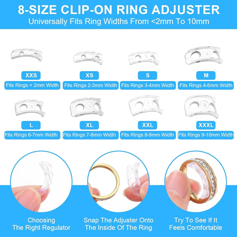 • 【Say Goodbye to Loose Rings】Fed up with rings slipping off or feeling too big? Our ring adjusters are here to save the day! Our adjusters come in 2 different styles, each with a different size to fit most rings. You can choose different sizes to wear according to your ring ideal for fluctuating ring sizes, weight loss, or selecting the wrong size, especially when the finger is much slimmer than the knuckle.