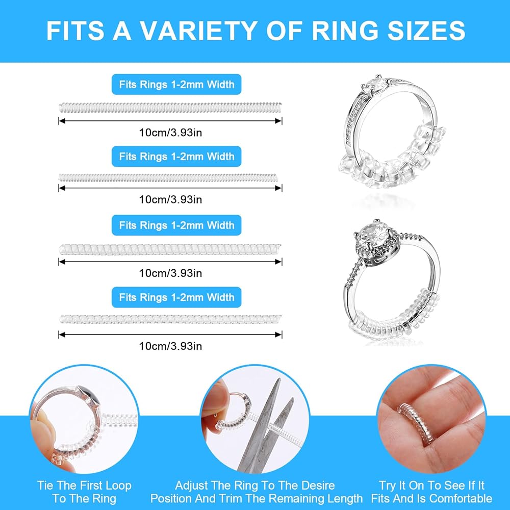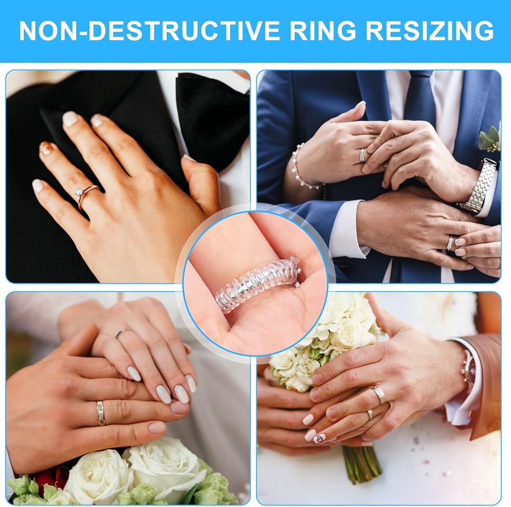 • 【Easy to Use】No need for expensive resizing at the jeweler. Our ring spacers for women are easy to install at home – simply slide the ring adjuster onto your ring for an instant size adjustment. Enjoy the convenience of adjusting your ring size without any hassle.
