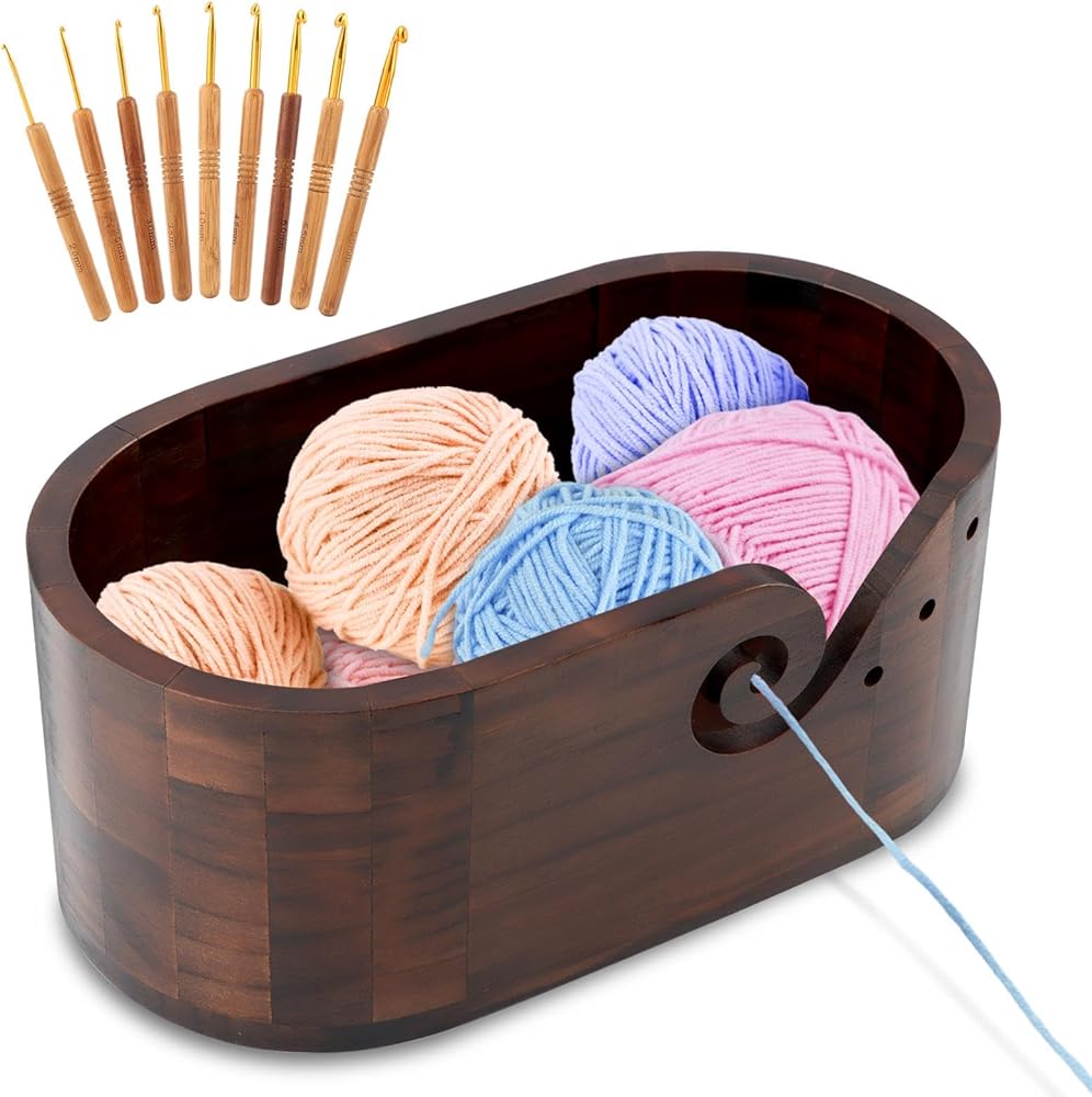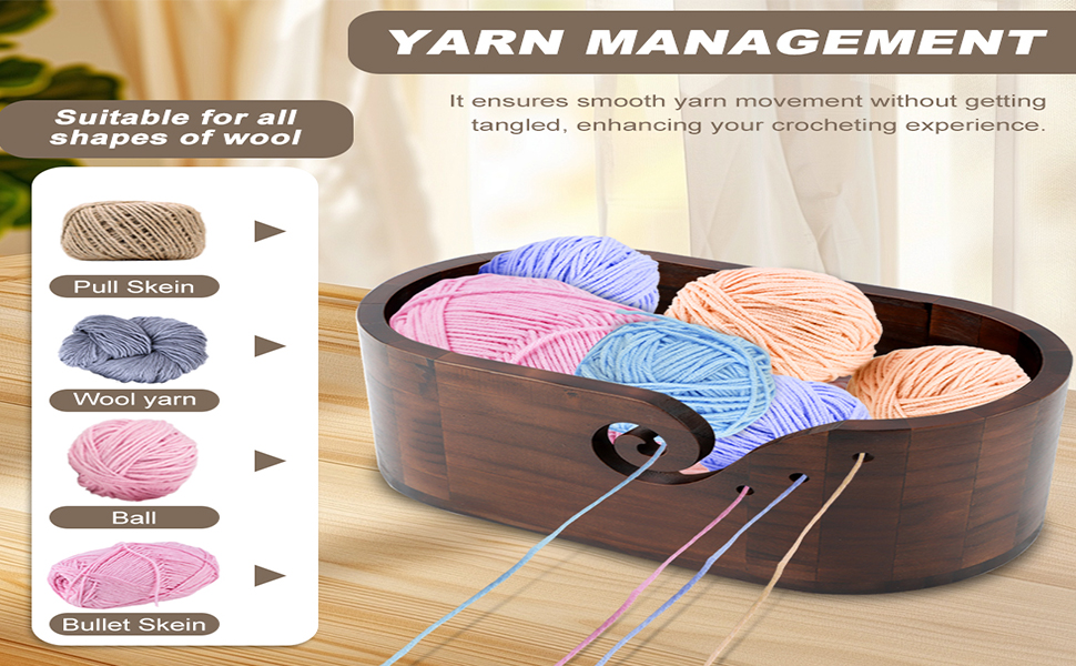 【تصميم وعاء الغزل البيضاوي】 على عكس أوعية خيوط الكروشيه الدائرية التقليدية ، يضم وعاء الغزل الخشبي شكلًا بيضاويًا فريدًا. يحمل هذا التصميم بشكل مريح Skeins بقيمة 7 أونصة أو كرات خيوط أصغر متعددة ، مما يوفر براعة أكبر لجميع مشاريع الحياكة والكروشيه.