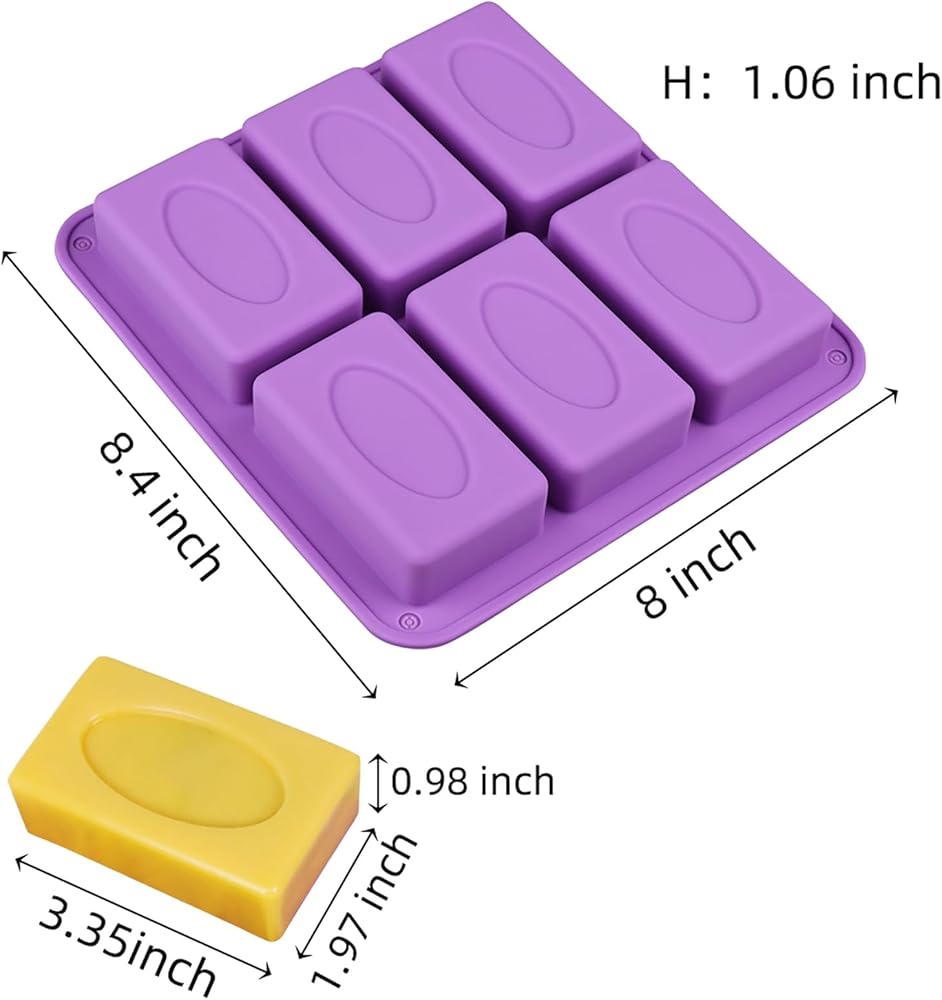 • Size: The silicone Rectangular soap mold is 8.66 x 7.87 x 1.02inch; Each rectangle soap measures 3.15 x 2.17 inch