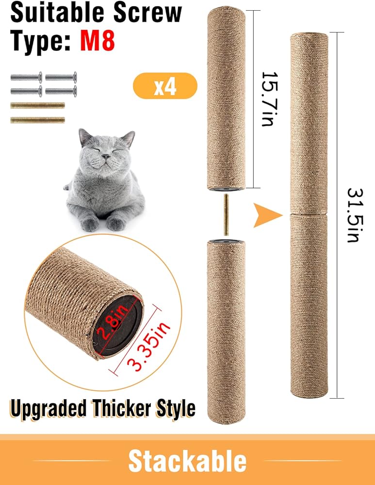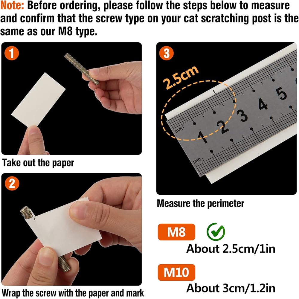 تأكد من نوع المسمار: أجزاء عمود إعادة صياغة شجرة Cat Tree مناسبة للمسامير من نوع M8 ، يرجى التأكد من أن Post Scratch Post أو شجرة القط مناسبة لبراغي نوع M8 قبل الشراء.