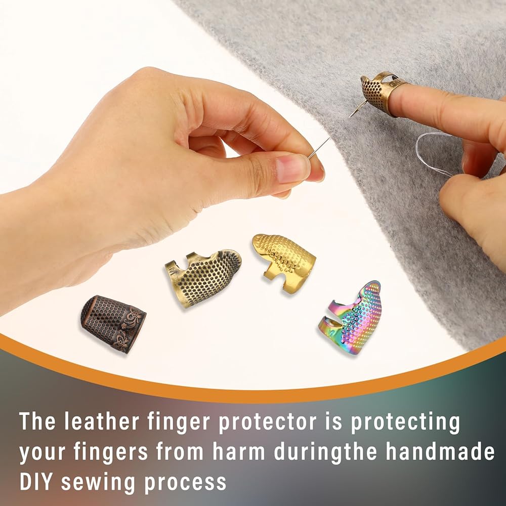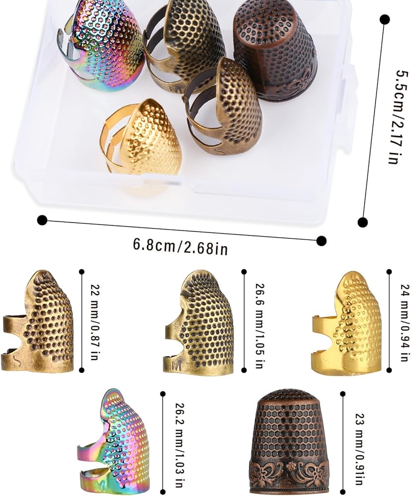 Sewing Thimble Set: You will get 4 pcs sewing thimbles and 1 pc thimble cap, various styles are enough to meet your sewing and finger protection needs.