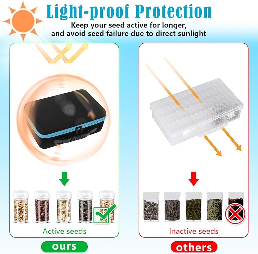 Multiple Protection: All seed organizer boxes are seated securely in sponge holes to avoid collisions between boxes. Compared to large plastic boxes, the high-quality zipper bag can provide more cushioning and is not easily damaged. And seed organizer bag can provide light-proof protection, allowing them to maintain vitality for longer