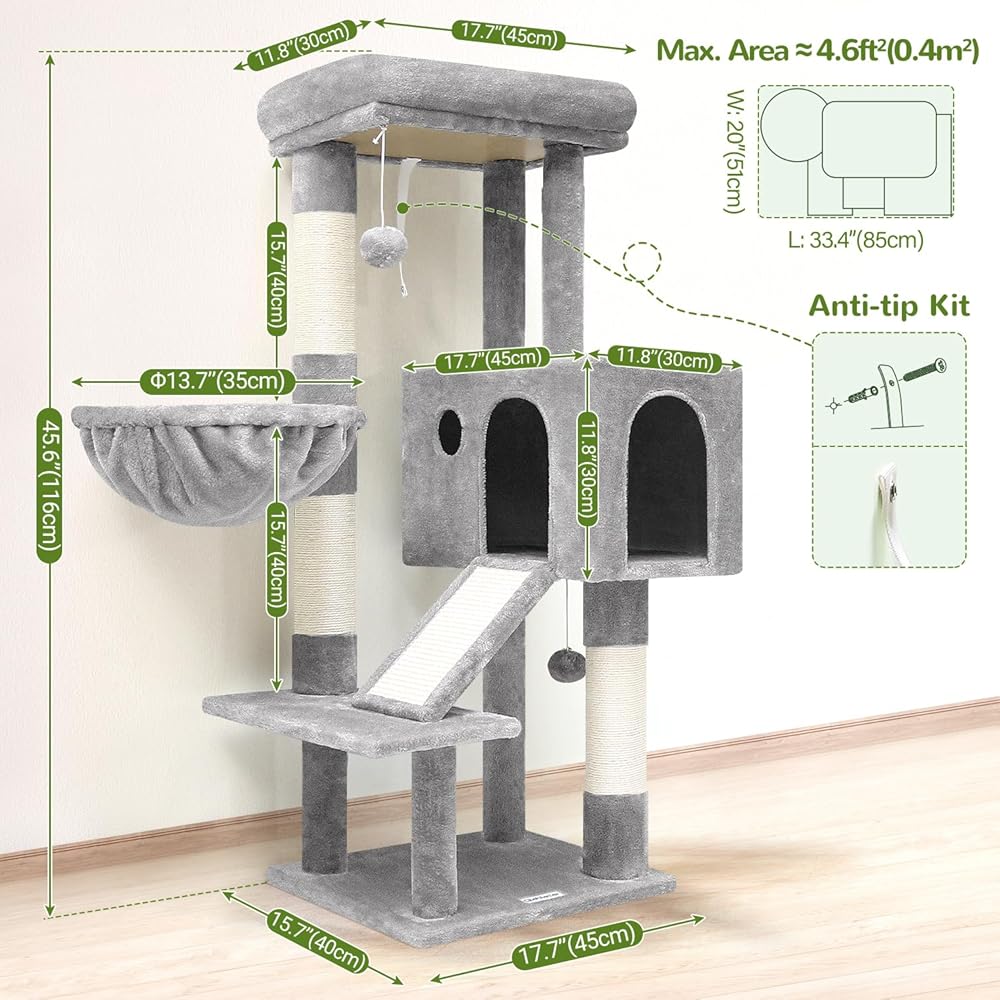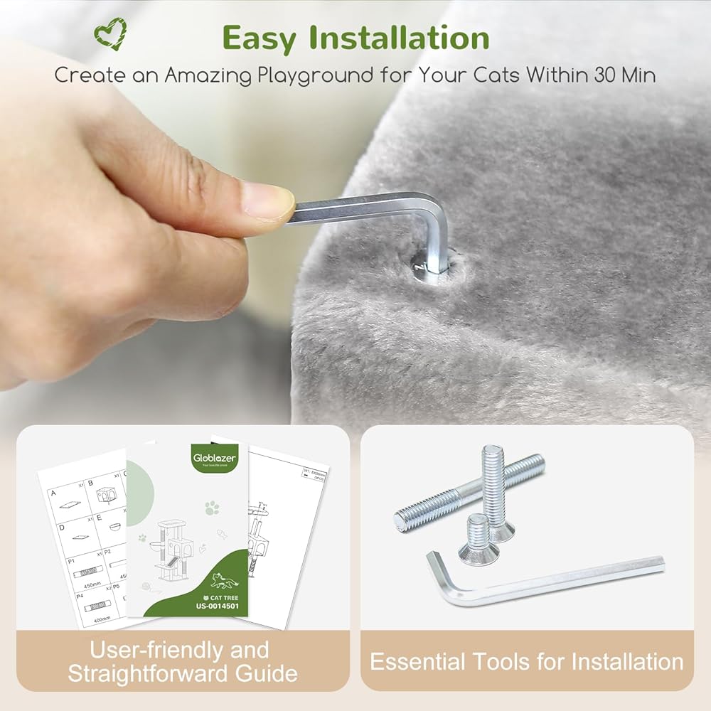 التجميع السهل: تتميز شجرة القط S45 بتصميم بسيط ، وتأتي مع تعليمات واضحة والأدوات اللازمة ، مما يضمن أنه يمكنك تجميعه بسرعة وسهولة