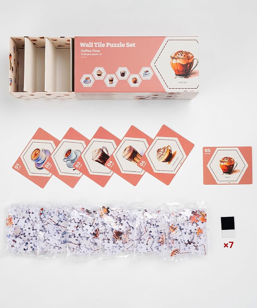 Pintoo Jigsaw Puzzle Wall Tile Puzzle Set Series Coffee Time Series - ستة من ألغاز البلاط من 56 قطعة تخلق شاشات ثلاثية الأبعاد مع شرائح قابلة للاستياء لا غراء مطلوب [HX1162]