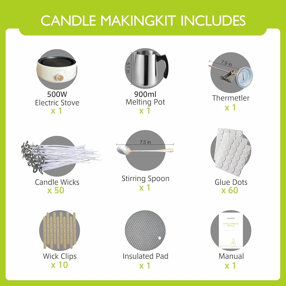 طقم صنع شمعة Picasort مع شمعية - مصنع شموع ، صفيحة ساخنة ، وعاء ذوبان ، مقياس حرارة ، مجموعات DIY للمبتدئين