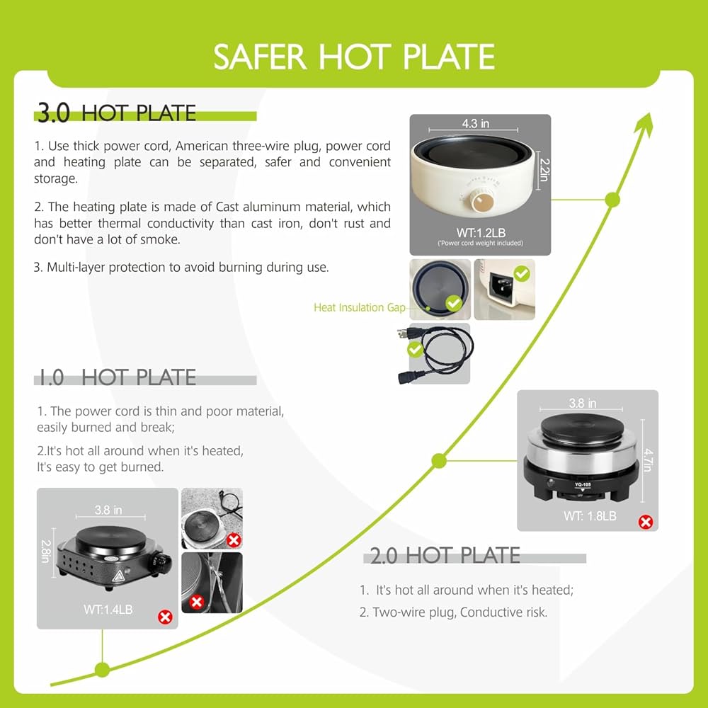 • 👍【 مواقد كهربائية أكثر أمانًا】 تصميم الطبقة المزدوجة يقلل من خطر الحروق. صفيحة التدفئة هذه مصنوعة من مادة الألمنيوم المصبوب ، والتي لها توصيل حراري أفضل من الحديد الزهر ، لا تصدأ وليس لديها الكثير من الدخان. يمكن فصل سلك الطاقة السميك ، قابس أمريكي ثلاثي الأسلاك ، لوحة تسخين سلكية الطاقة ، تخزين أكثر أمانًا ومريحة.