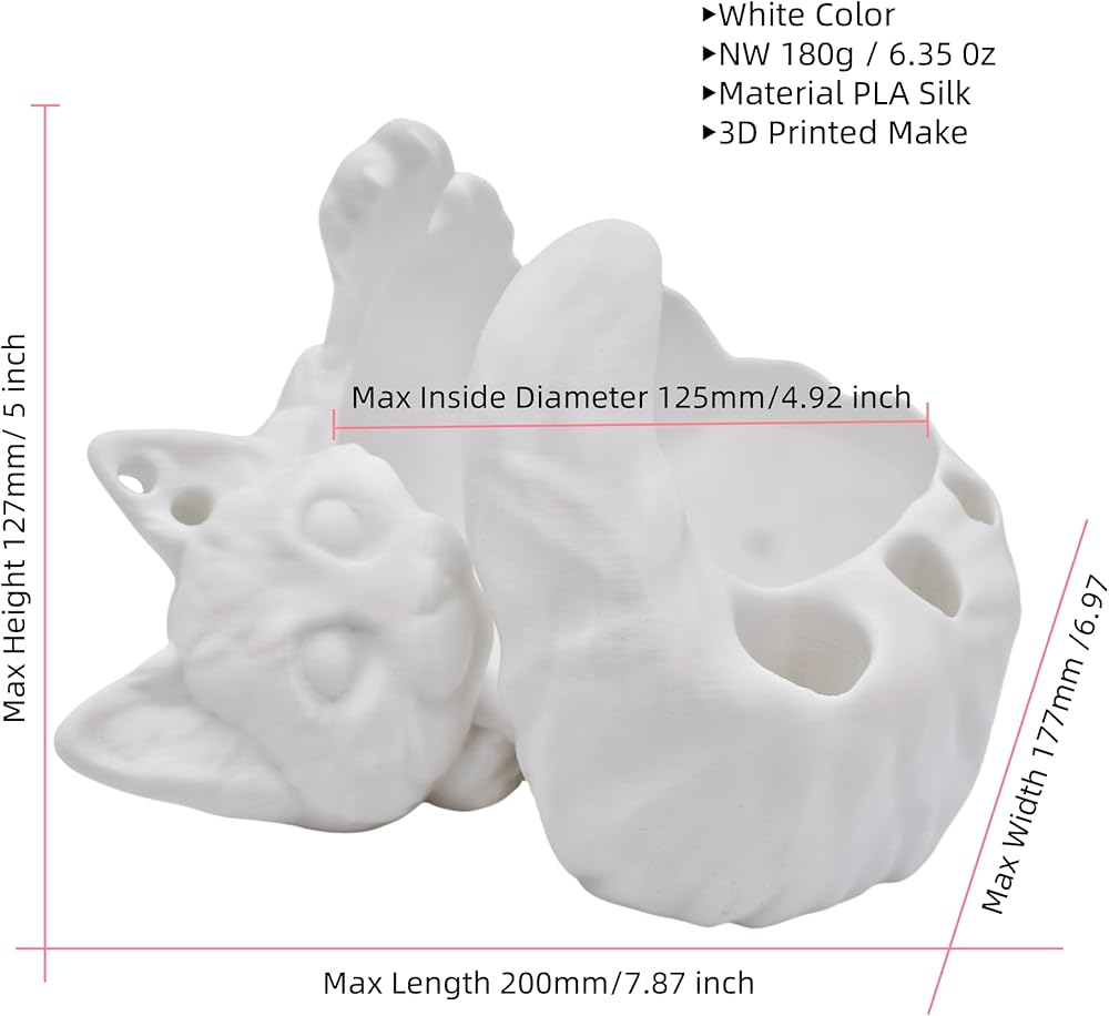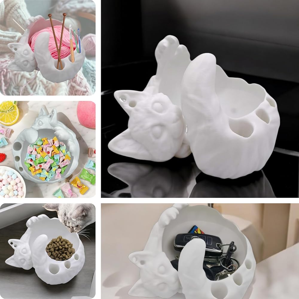 • تصميم شكل قطط ثلاثي الأبعاد فريد من نوعه: يتميز وعاء تخزين الغزل هذا بتصميم ساحر شكل القطط بواسطة طباعة ثلاثية الأبعاد ، مما يضيف لمسة من النزوة والأناقة إلى مساحة الصياغة أو ديكور المنزل