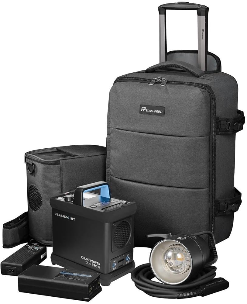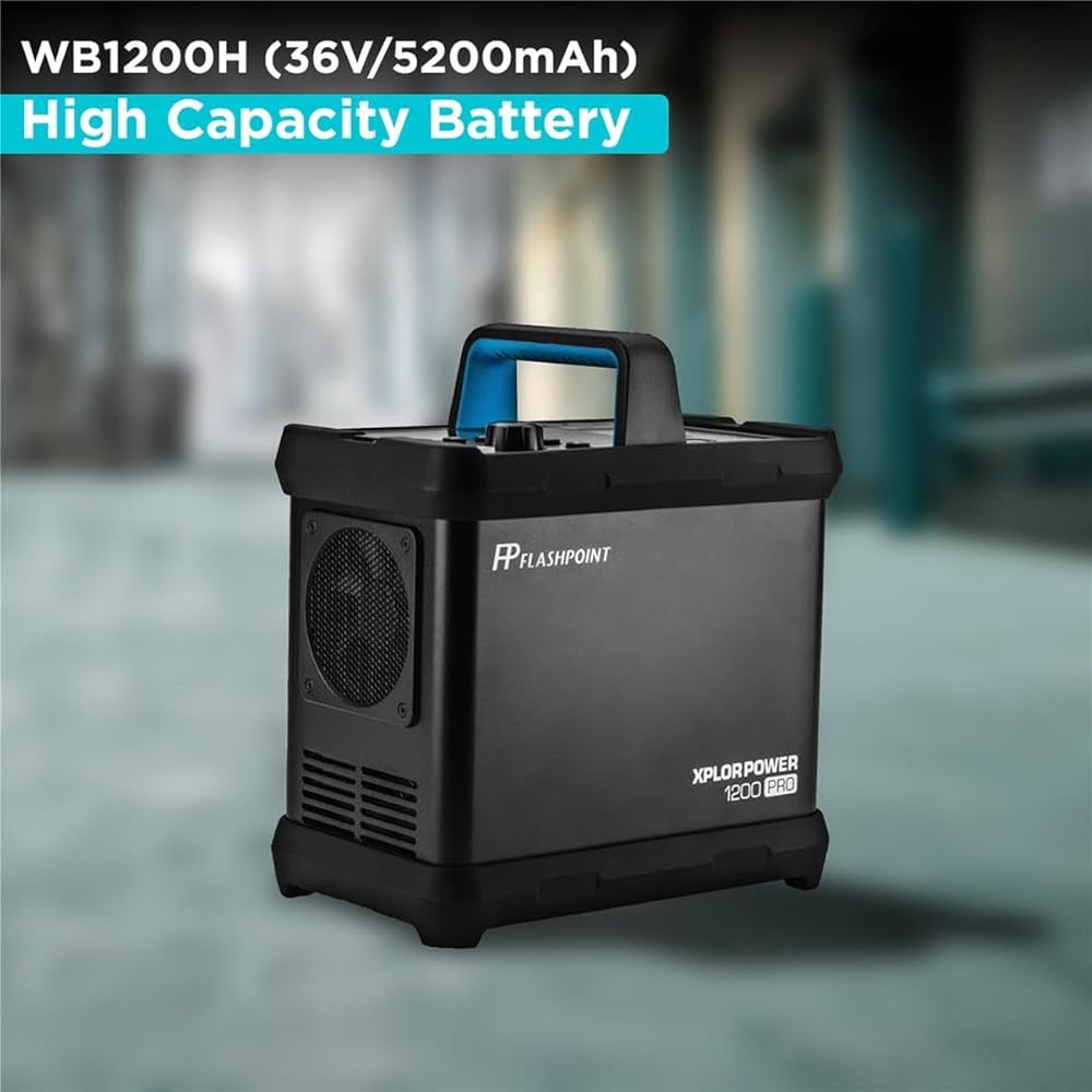 Flashpoint XPLOR Power 1200 Pro R2 TTL ضوء فلاش ستروب مع بطارية ليثيوم أيون 36 فولت/5200 مللي أمبير في الساعة 187.2 وات في الساعة، ضوء استوديو 1200 واط مع مصباح تشكيل LED COB، ضوء أحادي للتحكم اللاسلكي R2 مع وقت إعادة التدوير 2 ثانية