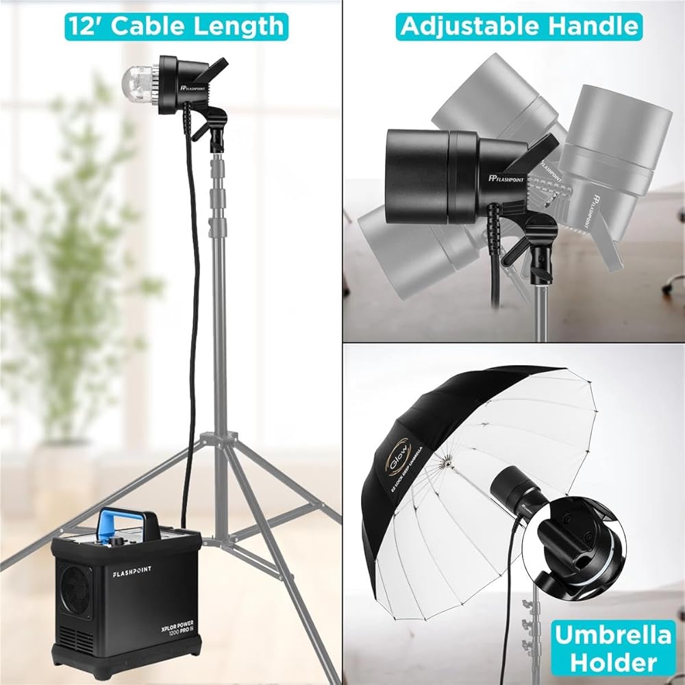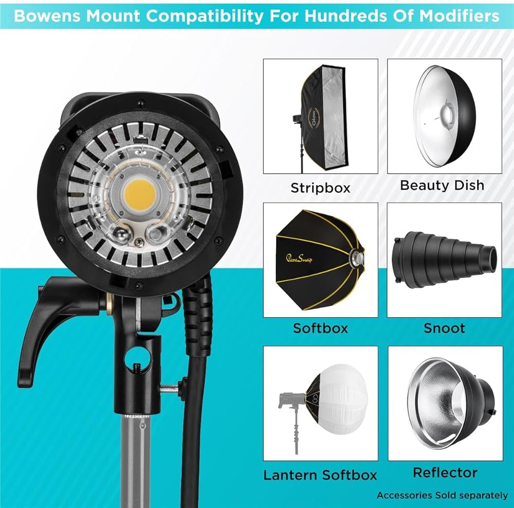 فلاش عالي الطاقة: يوفر ضوء التصوير الفوتوغرافي هذا مخرجات ضوء 1200 واط وGN يبلغ 407 بوصة/124 مترًا. إنه تغيير قواعد اللعبة لعشاق التصوير الفوتوغرافي بالضوء القوي