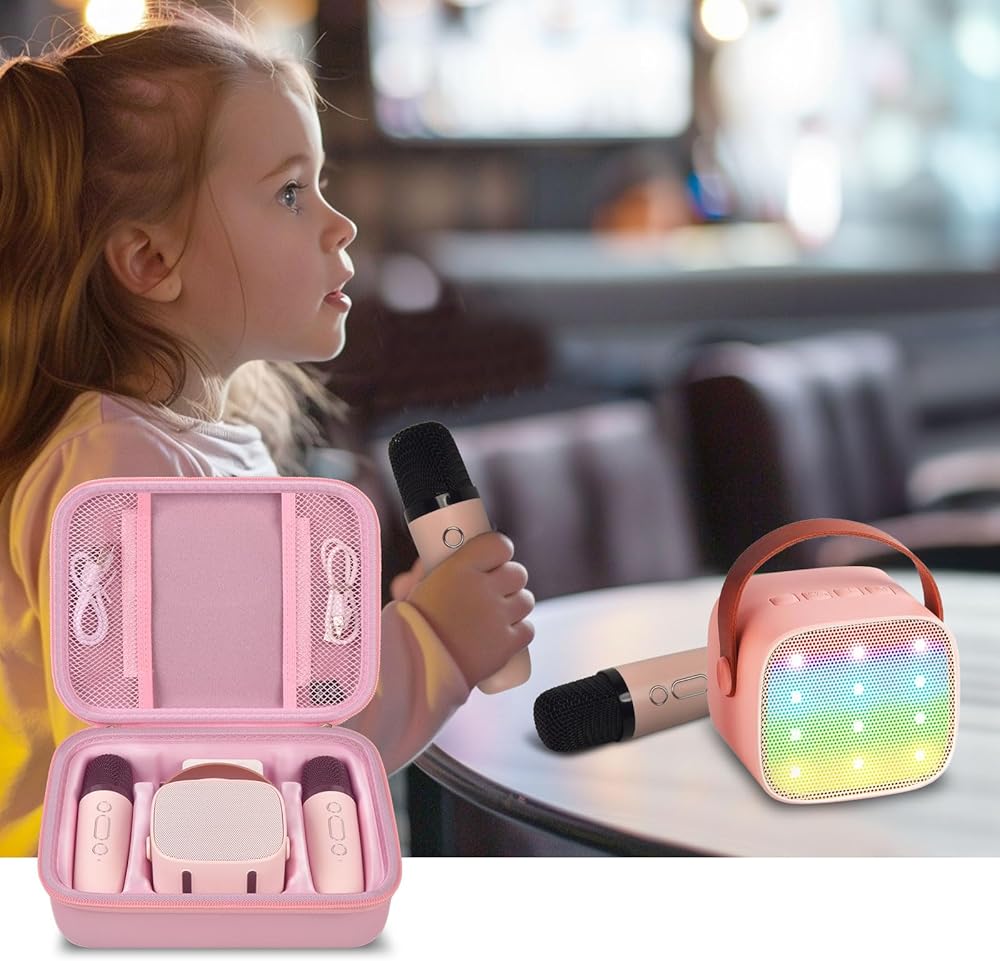 1 , علبة حمل آلة كاريوكي المصغرة: تصميم كيس تخزين ميكروفونات الأطفال لـ YLL Mini Karaoke Machine للأطفال البالغين ، كما يناسب VerkB/for Meguo/for Umeija/for Darkant/for Kingci/for Snowall Portable Bluetooth ، يتراجع عن 2 wirless. الميكروفونات ، سلك USB ، شاحن للفتيان الفتيات والمراهقين الصغار (للبيع هي الحالة غير متضمنة فقط الميكروفون و أي ملحقات)