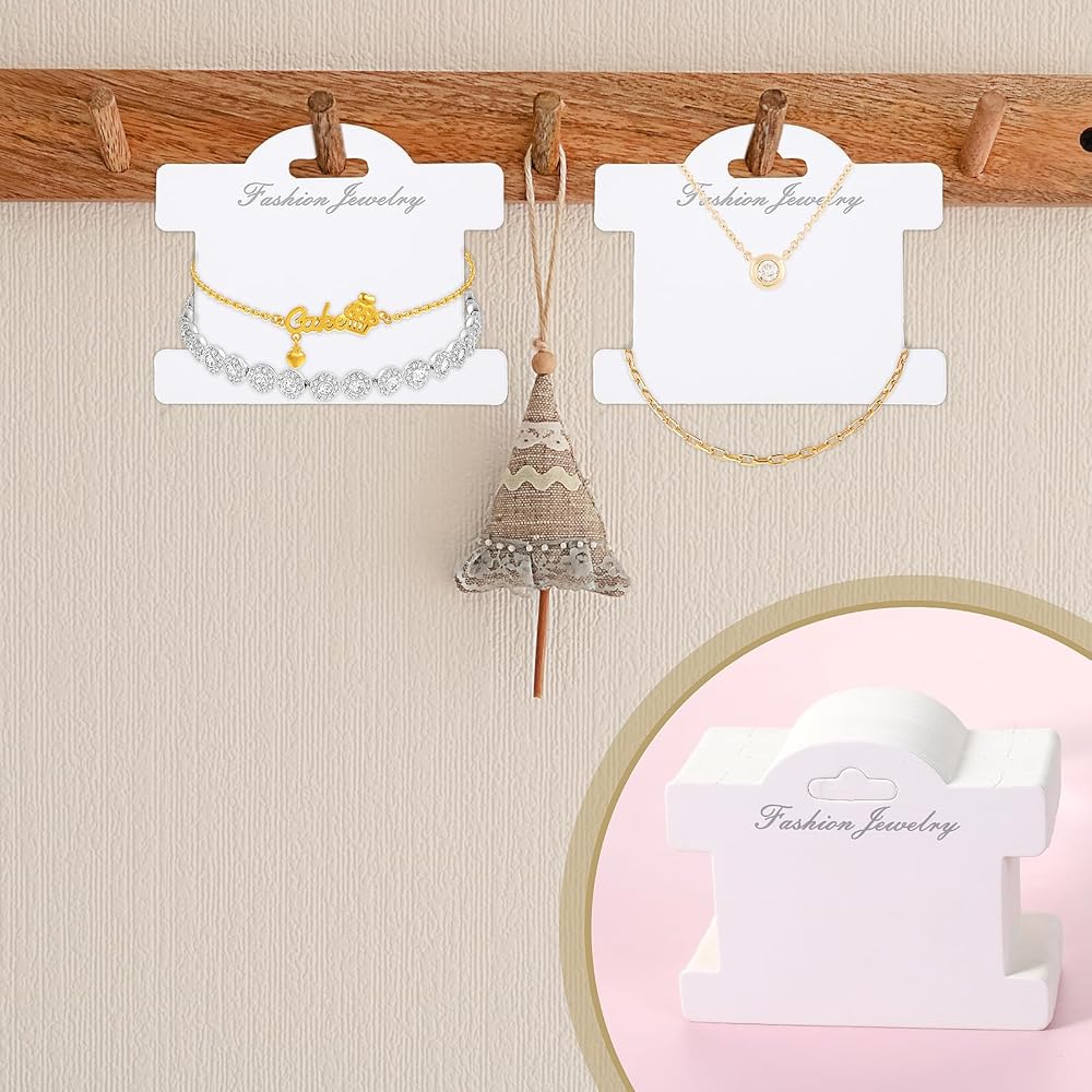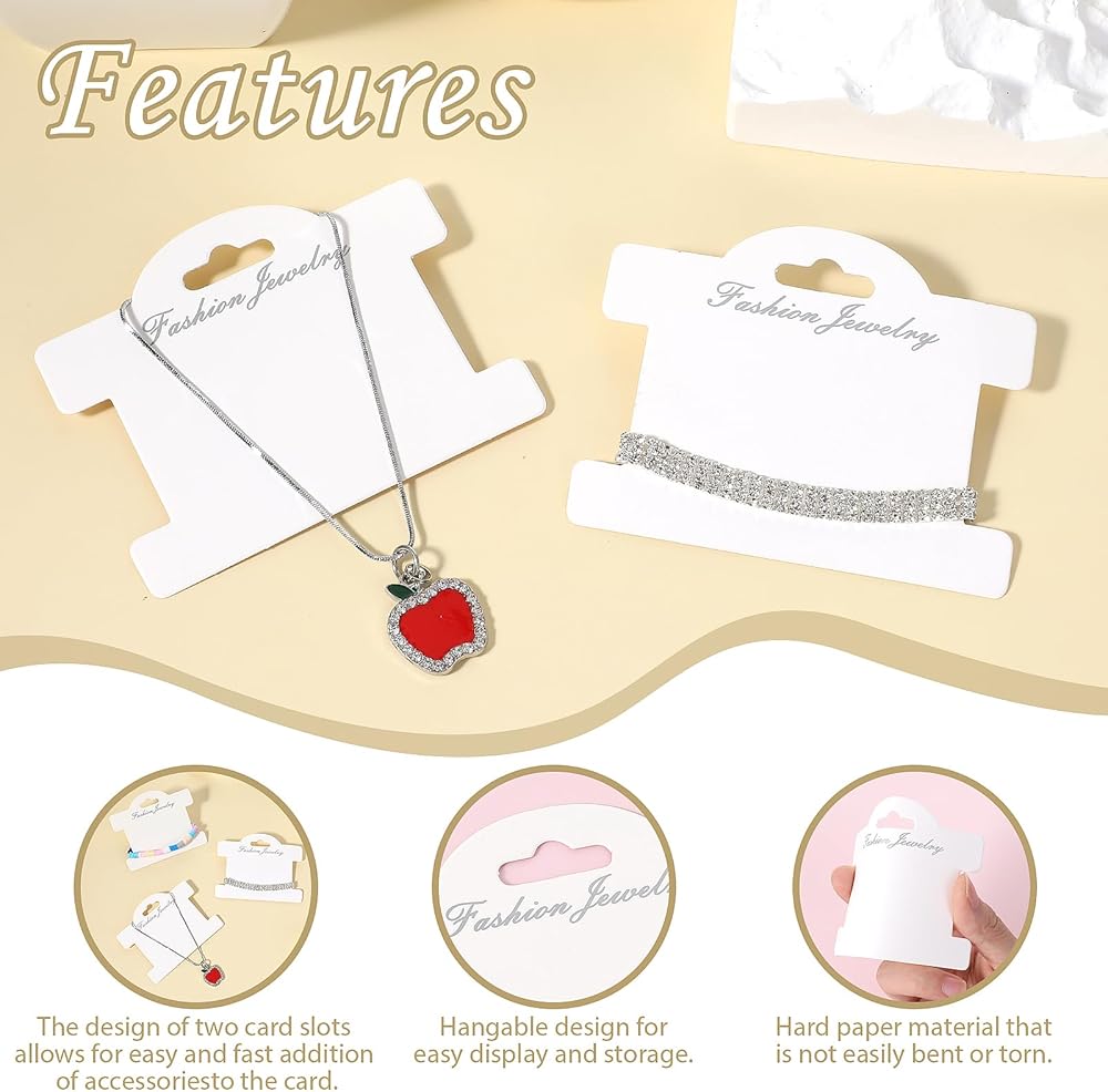 【Useful Design】The necklace display card adopts a hanging hole design, making the storage and packaging of exhibits more convenient.The 2 card slots on each card provide convenient functions for you to easily and quickly add accessories to the card.