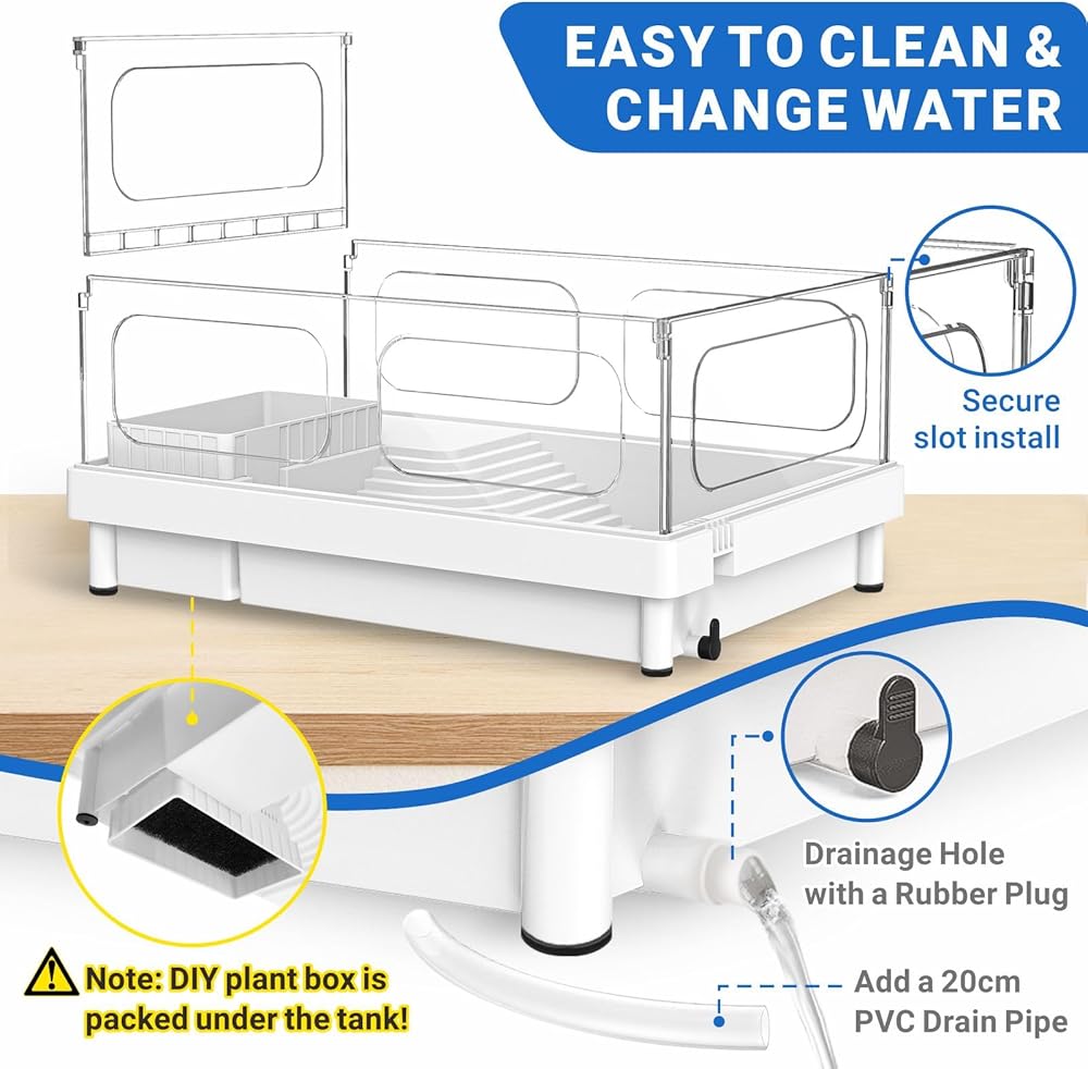 • 【تم تصميم خزانات سلحفاة Gozilla سهلة الاستخدام وسهلة التنظيف مع الصرف السفلي ، مما يتيح سحب القابس المطاطي للمياه الصرف من خلال فتحة صغيرة عند الحافة السفلية. هناك منطقة DIY قابلة للإزالة مجانية ، يمكنك استخدام الأحجار والأشجار الملونة المشمولة لتزيين المناظر الطبيعية لحوض السلاحف.