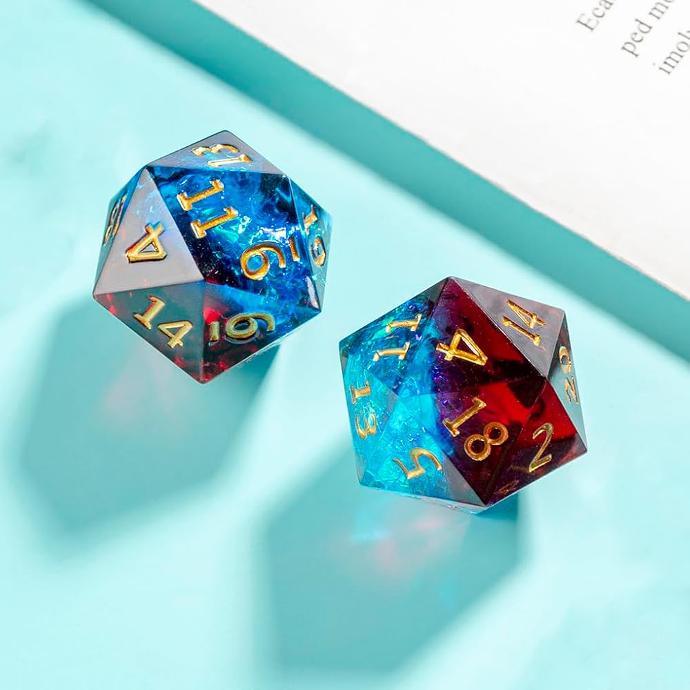 2 قطعة نرد متعدد السطوح D20 نرد 22 مللي متر راتنج 20 جانب لعبة النرد لألعاب طاولة النرد RPG MTG DND (أحمر أزرق)