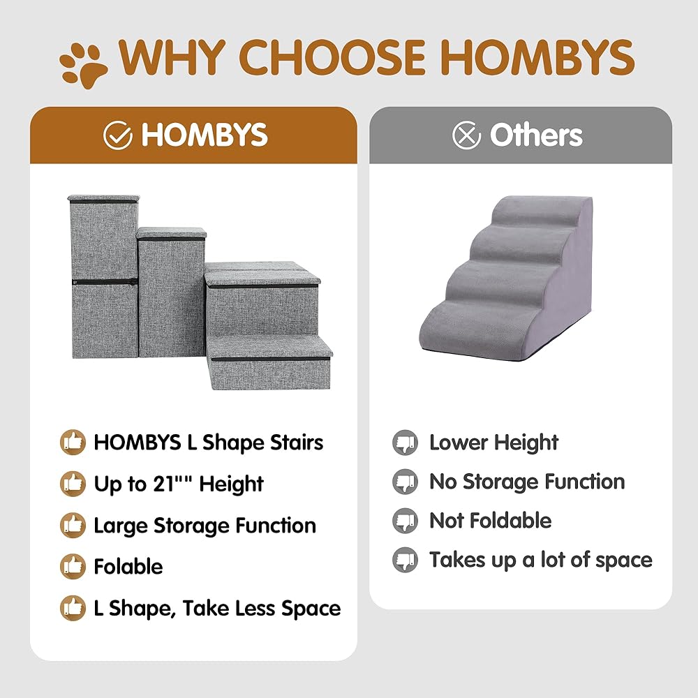Hombys l شكل الكلب النافذة ، درج الكلاب للسرير العالي ، خطوة للحيوانات الأليفة الكلب القابلة للطي مع تصميم التخزين ، جثم الحيوانات الأليفة للكلاب المسنة والكلاب قصيرة الساقين تنظر خارج النافذة ، للسرير والأريكة والسيارة