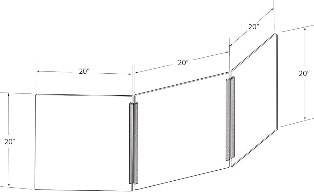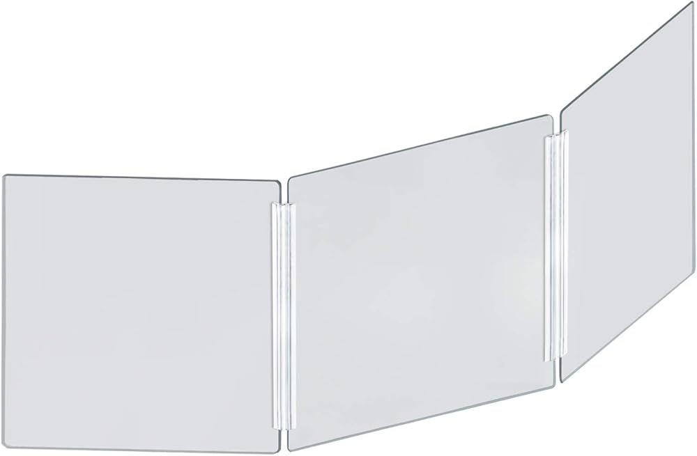 • ✅EASY ASSEMBLY - To assemble the tri-fold protective shield for counter or desk, simply attach hinges to the middle panel and side panels - no tools required. Set height of middle plexiglass to allow for transaction pass through or make flush with the counter. The C-channel hinges hold the acrylic secreuly in place