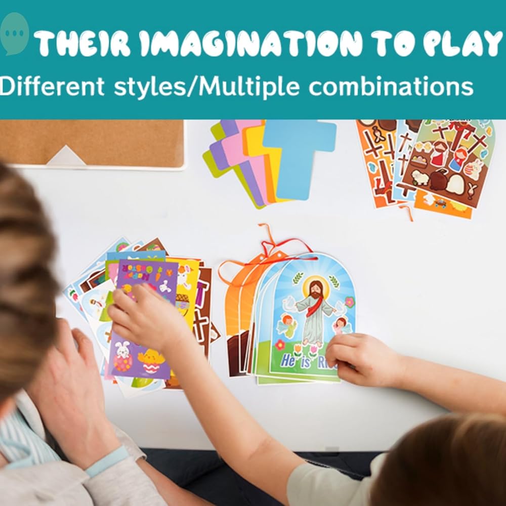 مجموعة عيد الفصح DIY: تم تصميم ملصقات أطفالنا لتكون ممتعة وإثراء الاحتفال بطفلك في عيد الفصح ، وتتميز هذه الملصقات عالية الجودة بصور ساحرة ليسوع ، والزخارف الفصحية والرموز المسيحية التقليدية ، وهي مثالية للإبداع الملهم في الحرف والأنشطة عيد الفصح