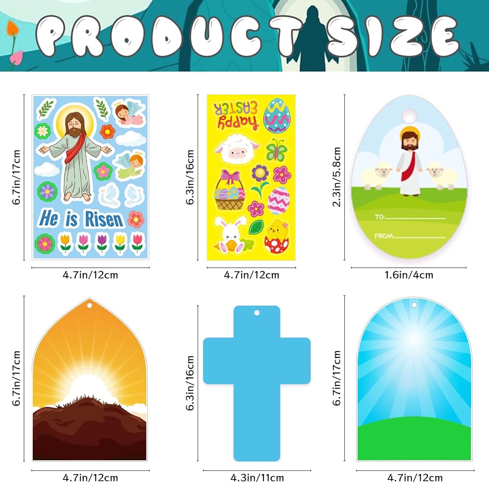مواد الجودة: هذه الملصقات الدينية مصنوعة من اللاصقة عالية الجودة ، وسهلة التقشير. عيد الفصح هو الملصقات والبطاقات ذات الألوان الزاهية ، مطبوعة بوضوح ولن تتلاشى. مصنوعة من Cardstock ، هذه الملصقات المسيحية مثالية للتعليق كزخارف
