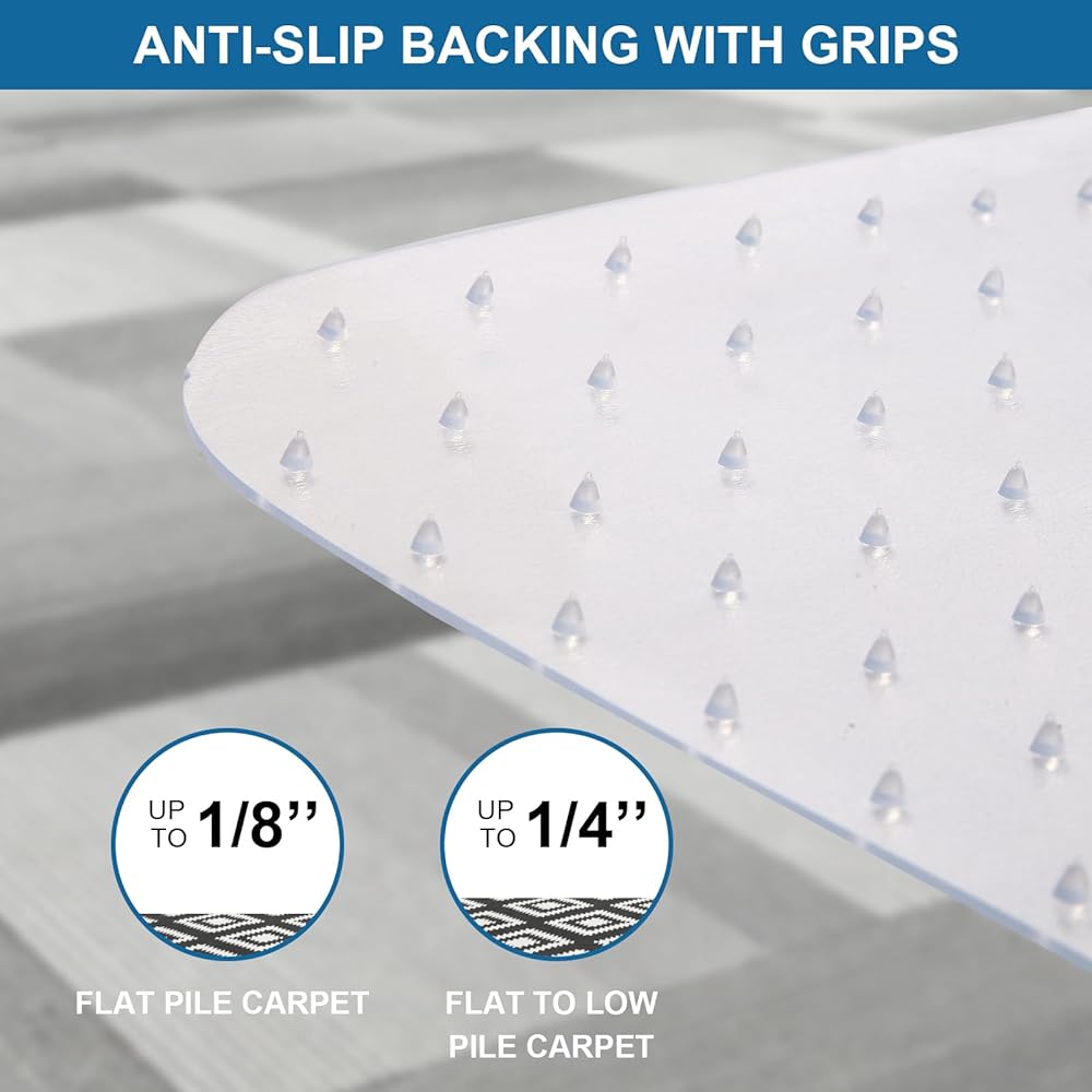 قبضة فعالة: تم تصميم حصيرة كرسي المكتب للسجاد هذه مع دعم مرصع للاحتفاظ بها بحزم على أرضيات السجاد المنخفضة. قل وداعا للحصائر المنزلق والتمتع بالاستقرار خلال يوم عملك