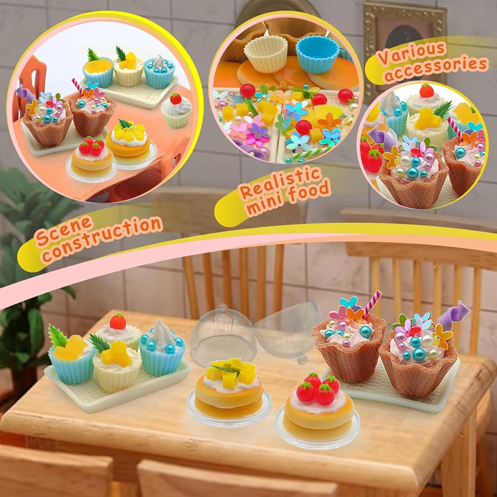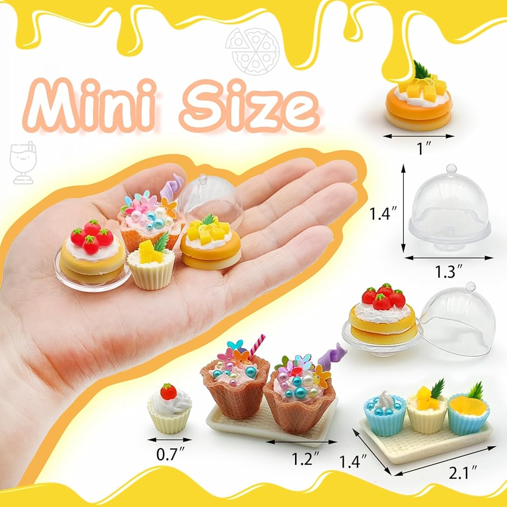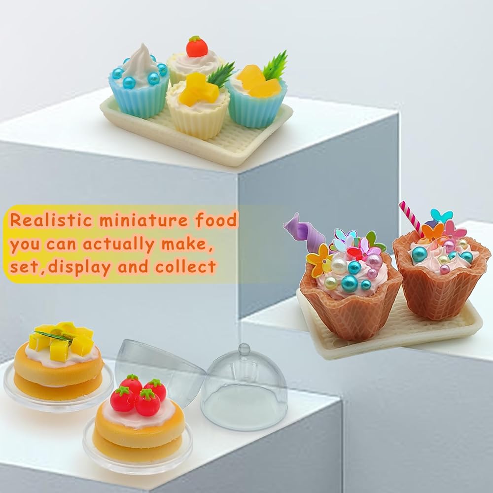 طعام مصغر واقعي: مجموعة حلوى الآيس كريم المصغرة مصممة ومضحكة بشكل مضحكة ، يمكنك صنعها وتعيينها وعرضها وجمعها
